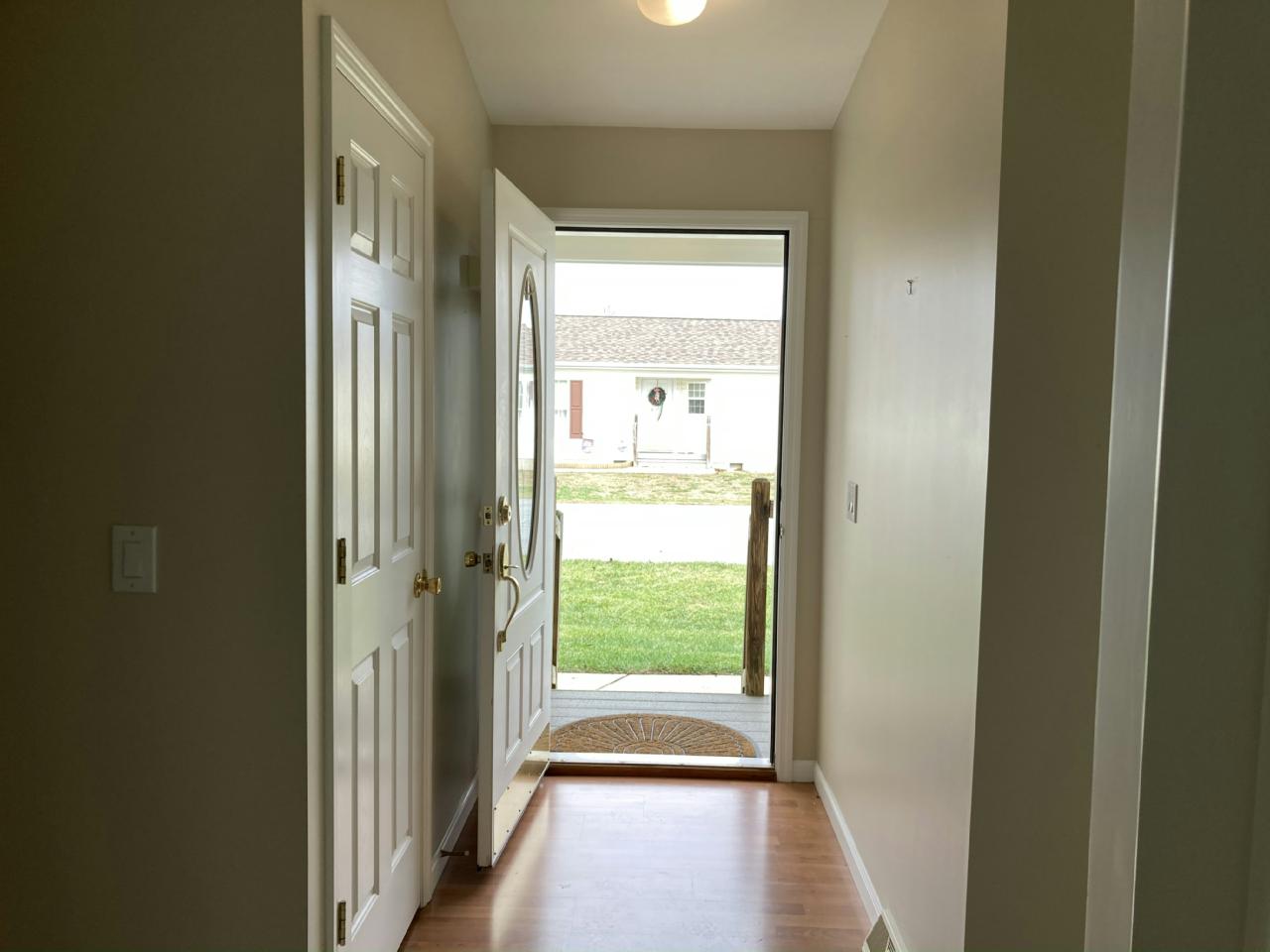 WELCOME HOME TO THE BEAUTIFUL 55+ ACTIVE ADULT COMMUNITY AT BARCLAY FARMS! This immaculate Remington model offers 3 bedrooms, 2 full baths, and 1,568 sq. ft. of comfortable, spacious living – truly a home that has it all. As you enter through the charming front door featuring an oval glass window, you are greeted by a welcoming foyer with a convenient coat closet. The home opens into a bright and airy open-concept living area, perfect for relaxing or entertaining.