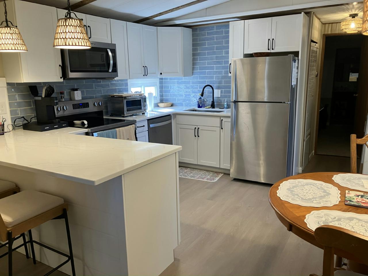 Recently renovated, fully furnished home for sale in a 55+ adult community. Nothing to do but move in and enjoy the benefits of living close to Long Beach Island. This home features new kitchen cabinets, solid surface counters, new appliances, new flooring, rugs, new tile and vanities in both bathrooms. This home is a must see! Our community is 40 Minutes to Atlantic City, 90 Minutes to NYC and Philadelphia