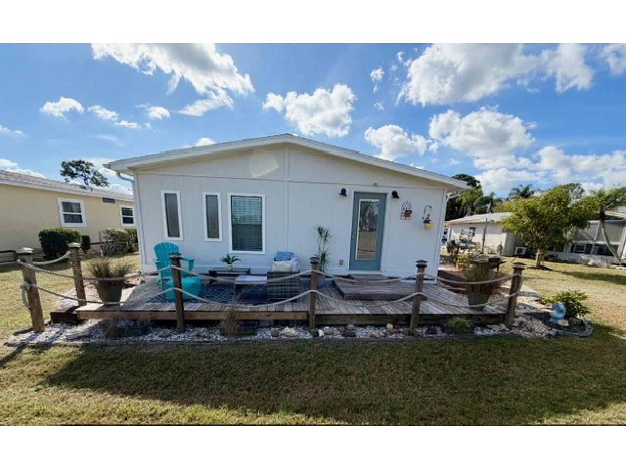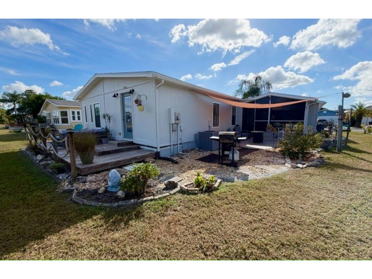 Beautifully updated, TURNKEY 2BD/2BA farmhouse-inspired home! This stunning open-concept home is thoughtfully designed for comfort & entertaining. Features luxury vinyl flooring, renovated kitchen/baths & planked ceilings thru-out, exuding charm & modern elegance. Upgrades: newer roof, contemporary light fixtures complemented by freshly painted interior/exterior & a layout that maximizes natural light & flow. Private deck off the main suite w/ incredible views while the spacious lanai & patio provide the perfect setting to unwind & take in breathtaking lake/golf course vistas-MOVE-IN-READY!