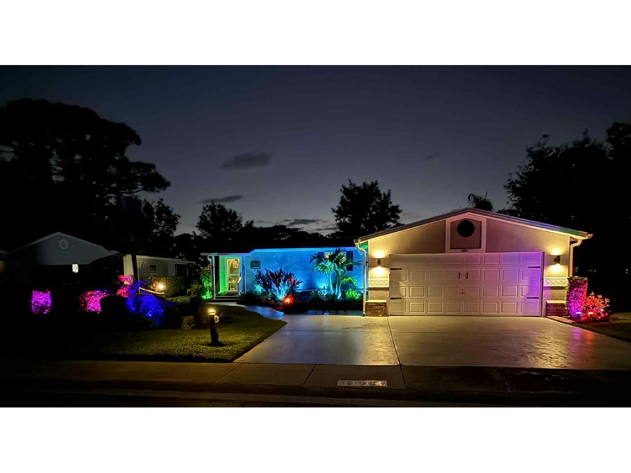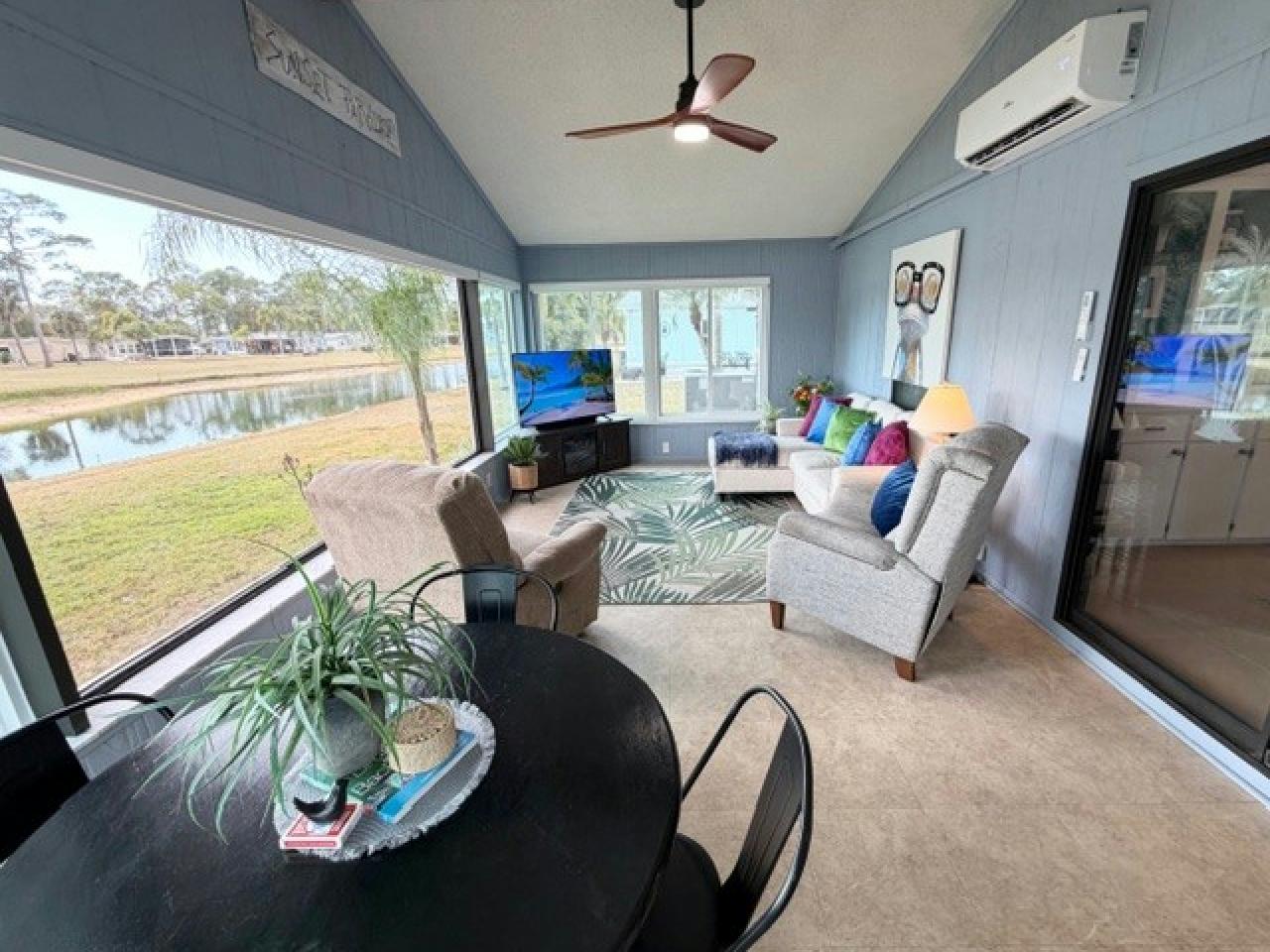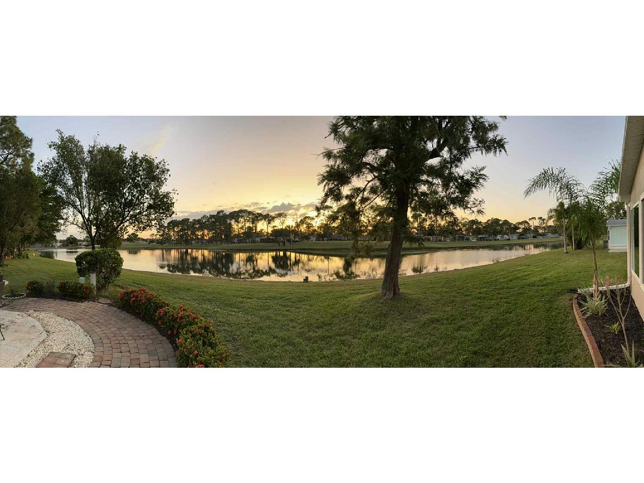 Stunning TURNKEY 2bd/2ba stucco home w/million $$ views! 4-season Florida Room w/ killer sunsets w/golf & water views. Open floor plan w/plank & tile flooring. plantation shutters & fireplace. Granite kitchen w/S/S appliances – tons of counter space. Vanities, tiled showers & main bath with soaking tub. HIGHLIGHTS: Office/Laundry w/built-in desk & newer washer/dryer; Florida Room with motorized blinds, terrazzo patio. Tasteful landscaping & extra wide driveway. Updates: Windows (2025), Roof (2017), A/C, vapor barrier & water heater (2022), Wi-Fi irrigation, landscaping lights, with golf cart!