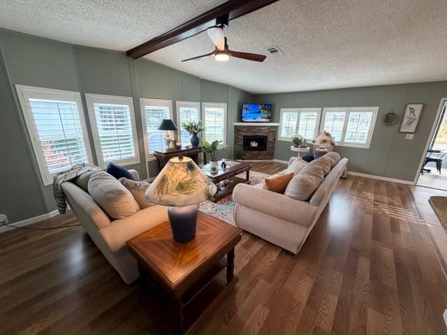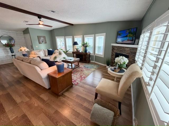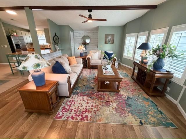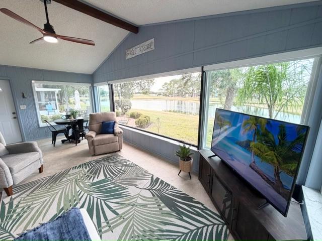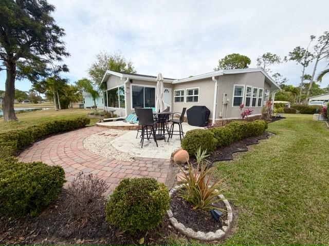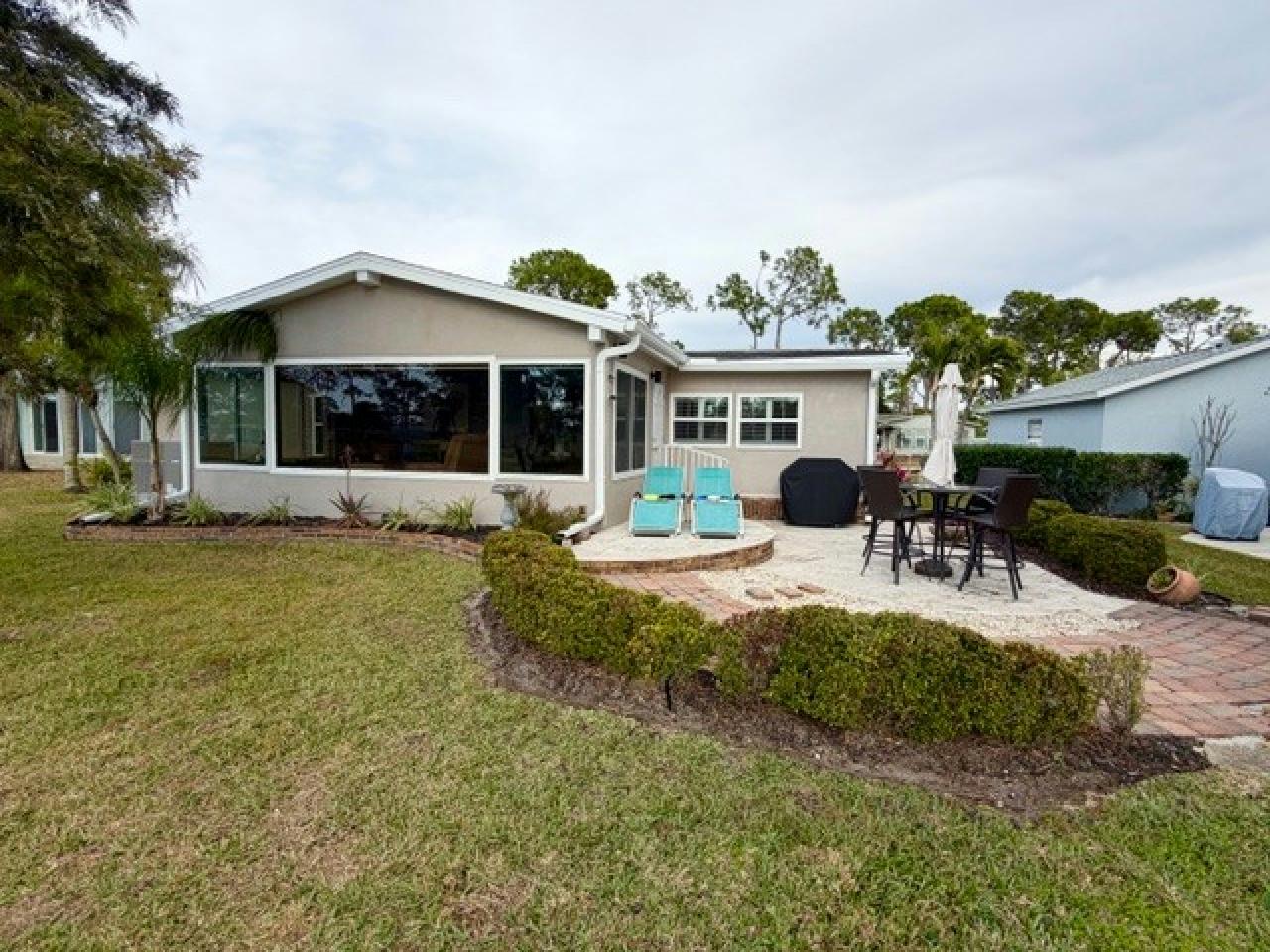 Stunning TURNKEY 2bd/2ba stucco home w/million $$ views! 4-season Florida Room w/ killer sunsets w/golf & water views. Open floor plan w/plank & tile flooring. plantation shutters & fireplace. Granite kitchen w/S/S appliances – tons of counter space. Vanities, tiled showers & main bath with soaking tub. HIGHLIGHTS: Office/Laundry w/built-in desk & newer washer/dryer; Florida Room with motorized blinds, terrazzo patio. Tasteful landscaping & extra wide driveway. Updates: Windows (2025), Roof (2017), A/C, vapor barrier & water heater (2022), Wi-Fi irrigation, landscaping lights, with golf cart!