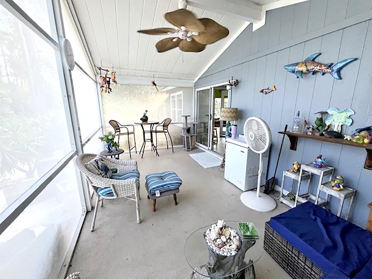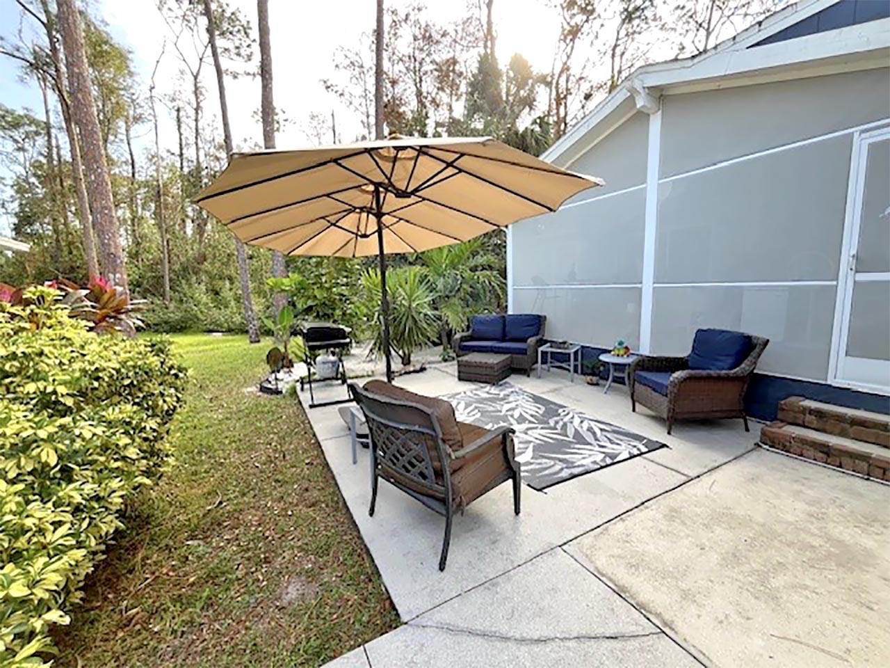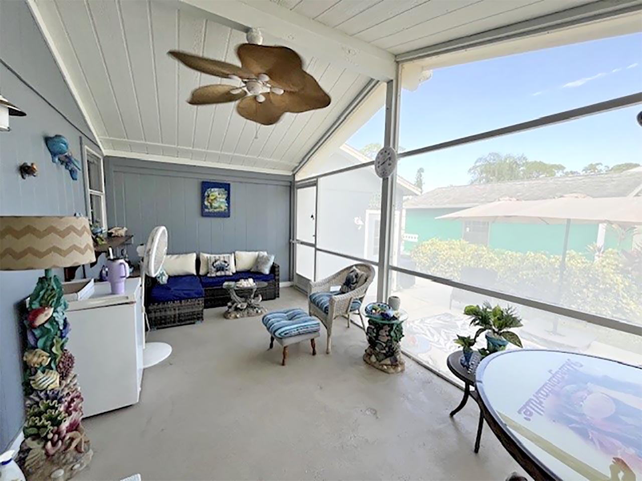 1700+ S.F. 2/bd, 2/ba home w/ Den is situated on a beautiful preserve lot. The custom kitchen features ample cabinetry, generous counter space & convenient indoor laundry area. A spacious Living room, Dining area, & expansive Family room accessed through French doors offering views of the lush surroundings. Both bathrooms have been tastefully updated with newer vanities. The large lanai & patio invites relaxation & the double screened garage with an extended driveway provides plenty of space. Abundant storage & BONUS…golf cart & generator included!