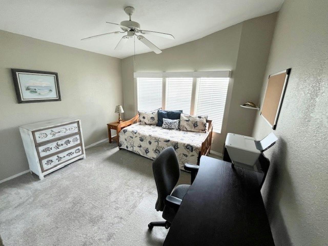BEAUTIFULLY DONE!! This updated 2bd/2ba home offers a split floor plan allowing privacy for you & your guest. A custom kitchen features soft-close Shaker cabinets, quartz counters, S/S appliances & a spacious double-door pantry-perfect for entertaining. Enjoy a bright living room, waterproof LVP flooring & newer carpet in bedrooms. Recent upgrades: plumbing & electrical panel (2023), A/C (2024), roof (2018), & fresh interior/exterior paint (2024). Relax in the cozy lanai or outdoor patio. Long driveway offers extra parking. Home is being sold TURN-KEY!