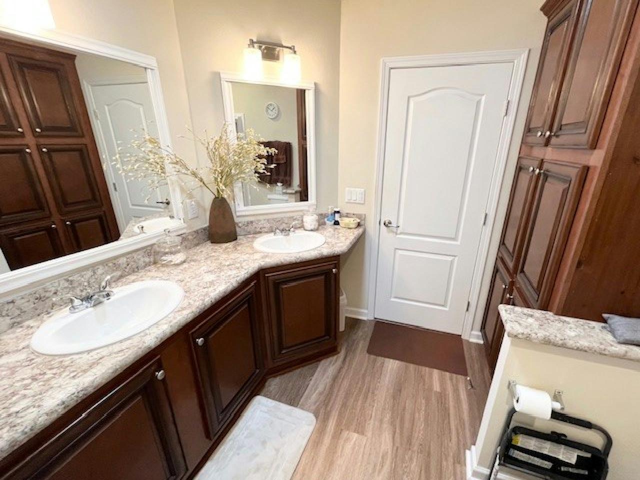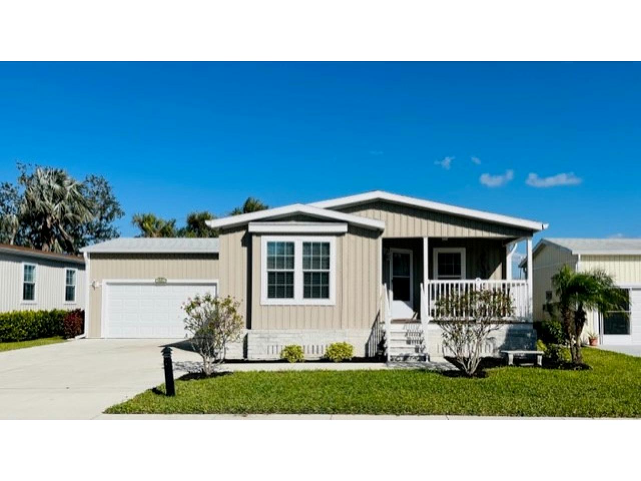 Beautiful 2017 2BD/2BA + den/office/3rd bedroom home has the WOW factor! Open concept floor plan features a spacious kitchen with abundant cabinets, S/S appliances, ample counter space, HUGE pantry & large island with seating. Crown molding, wide hallway with French doors leading to den/3rd bd add elegant charm. Both bedrooms offer roomy closets; vinyl plank flooring in main areas, convenient indoor laundry, large double screened garage & located on a low fee site. Relax, enjoy sitting on the front porch or on the spacious patio out back, ideal for entertaining. Home is being sold TURN KEY!