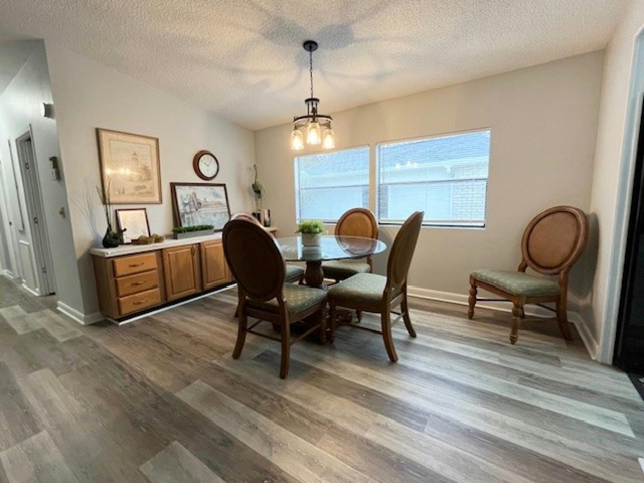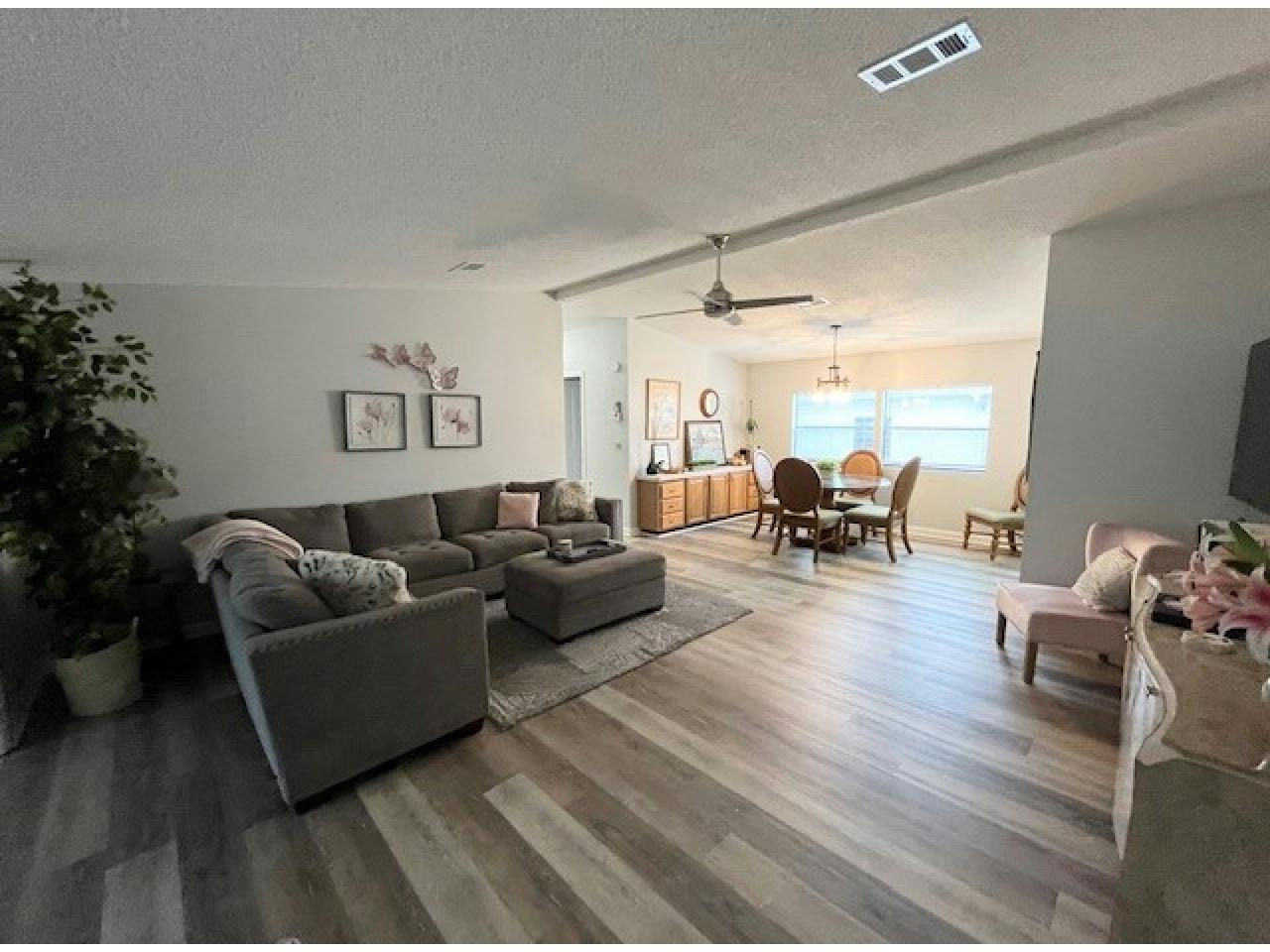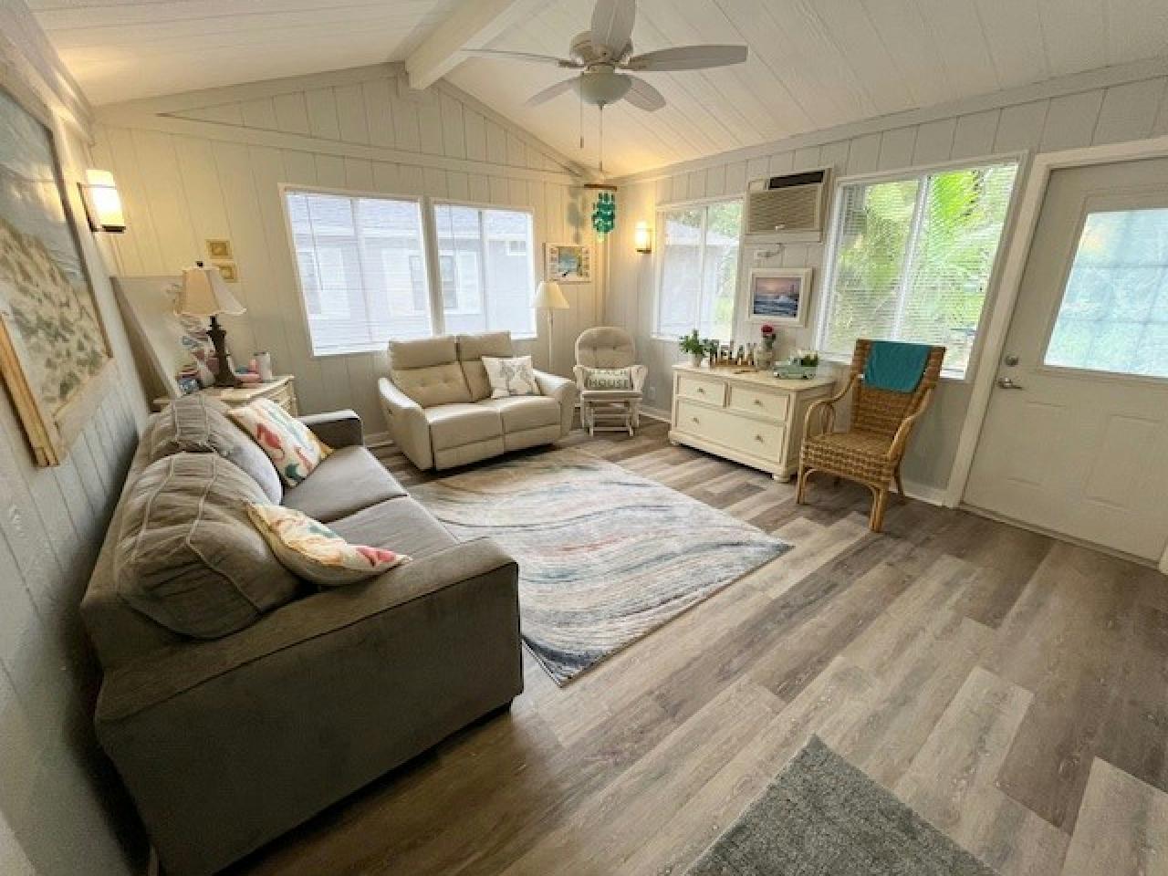 This beautifully updated 2bd, 2ba home is situated on a private lot, steps away from one of Del Tura’s inviting pools. The spacious, renovated granite kitchen offers abundant counter & storage space making it ideal for entertaining & seamlessly connects to the open dining & living areas. Notable upgrades include: 2023 roof + gutters, luxury vinyl plank flooring & stylish newer fans & fixtures. The versatile Family/Sunroom provides a cozy retreat, perfect as an office or den. Additional features include an indoor laundry area w/ built-in desk & cabinet storage. TURN KEY & includes golf cart!