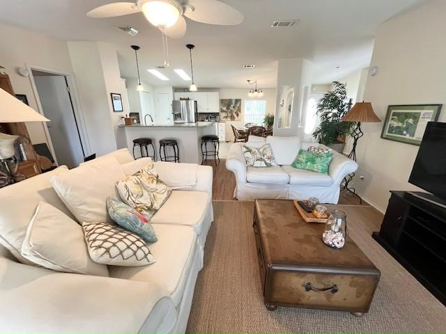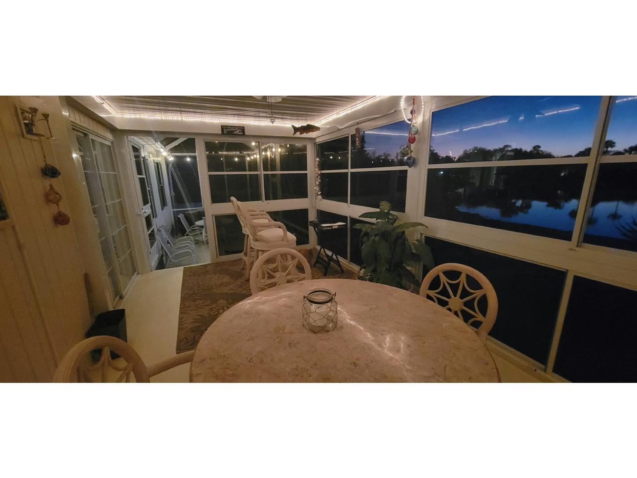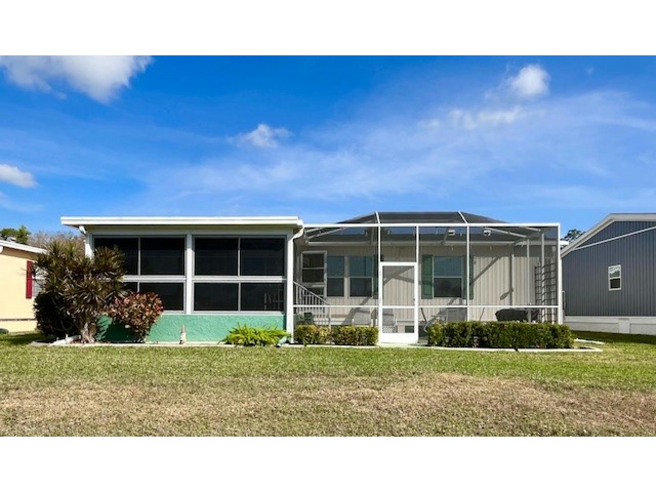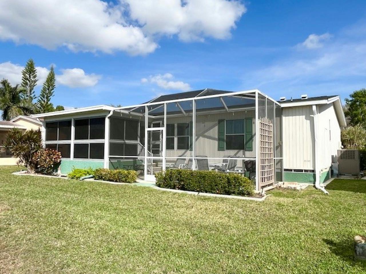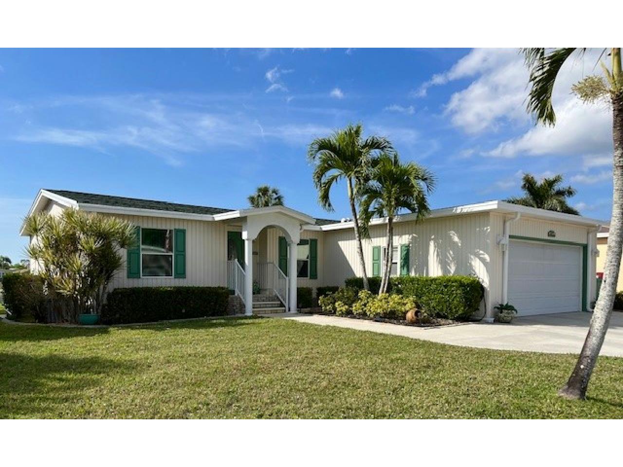 This PARTIALLY furnished split, open plan, 3bd, 2ba LAKE VIEW home features an all-weather 17×10 Lanai as well as a 25×10 screened Patio offering breathtaking sunsets. Kitchen appointed with granite counters, an island, breakfast bar, S/S appliances & an indoor laundry. Master bedroom with ensuite bath & walk-in shower, while twin beds are in 2nd guest bedroom & 3rd bedroom/Den has a Murphy bed. A large 20’ x 20’ 2-car Garage with fridge & extended wide driveway offering ample parking. Upgrades include: 2022 roof & 2023 water heater. A beautiful MUST-SEE Florida home with golf cart included!