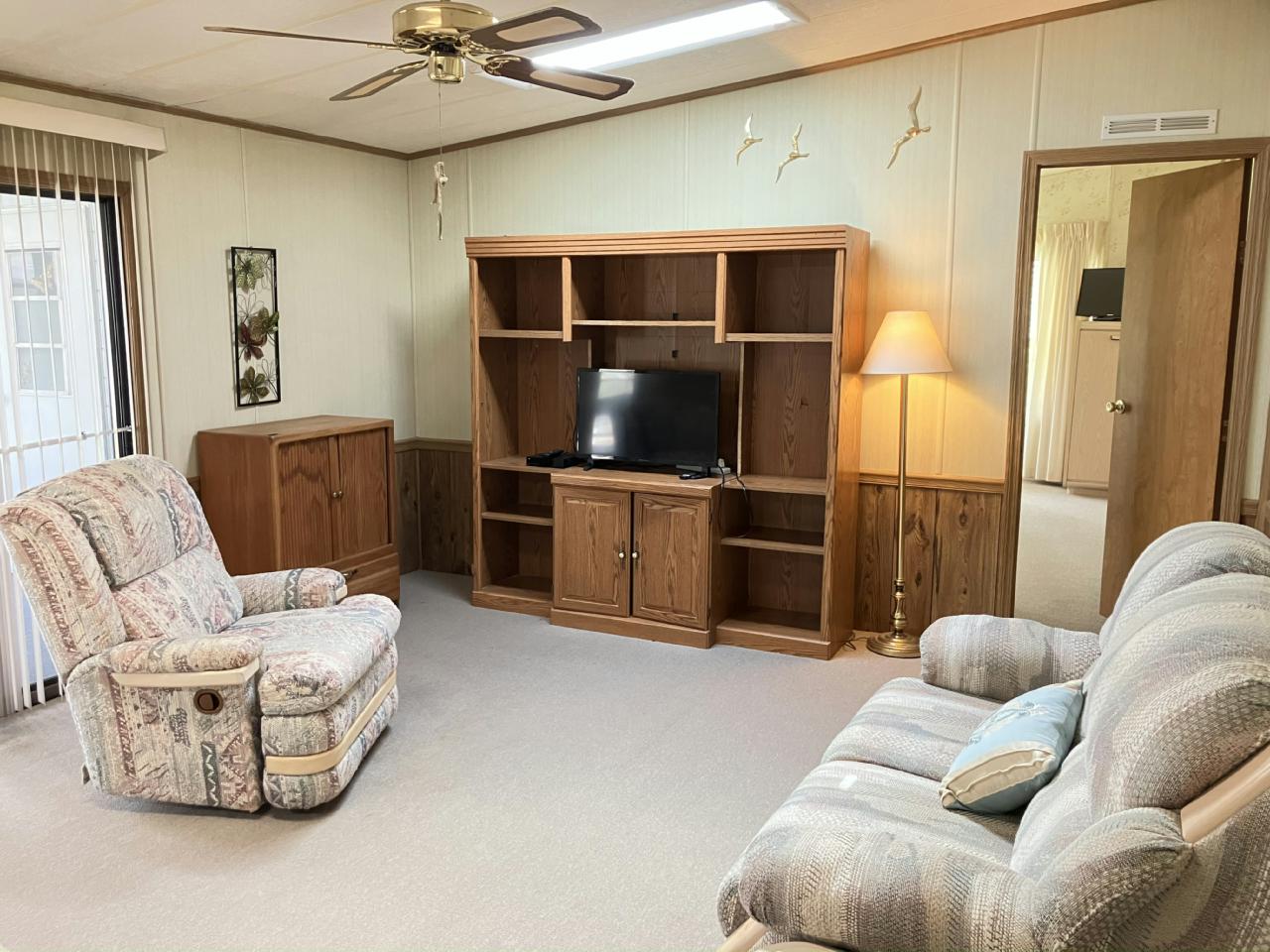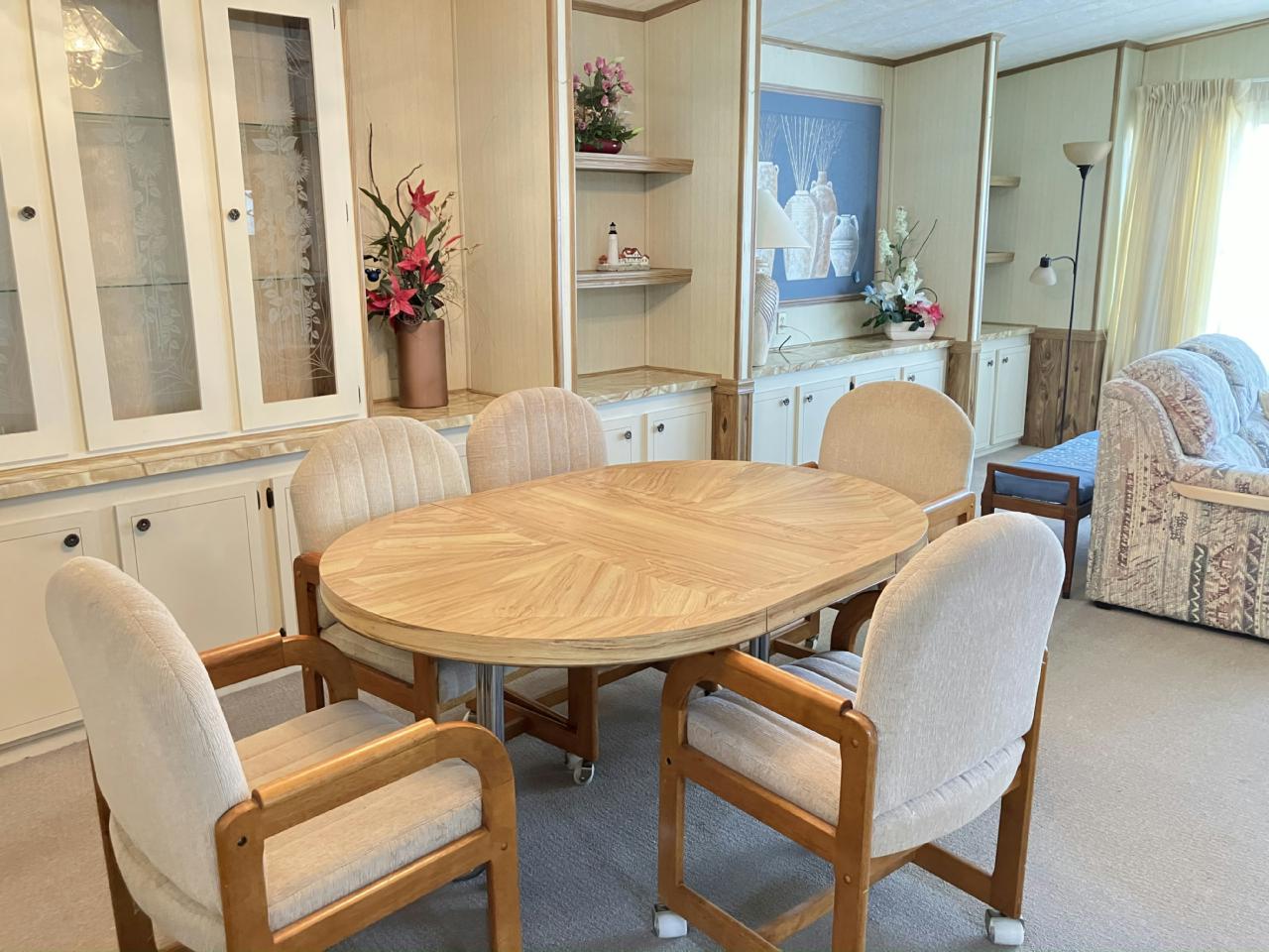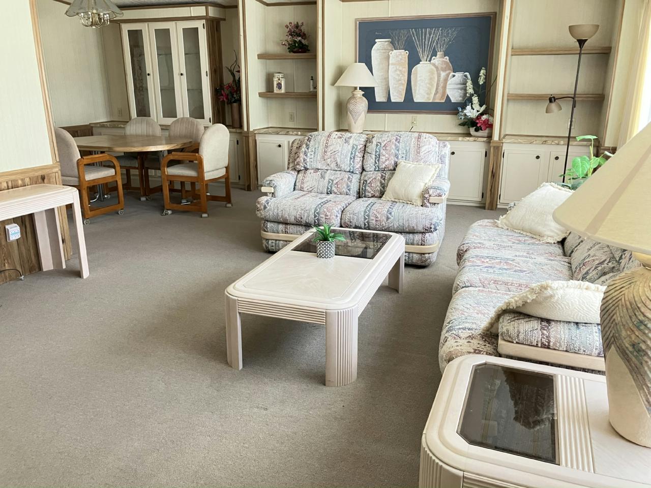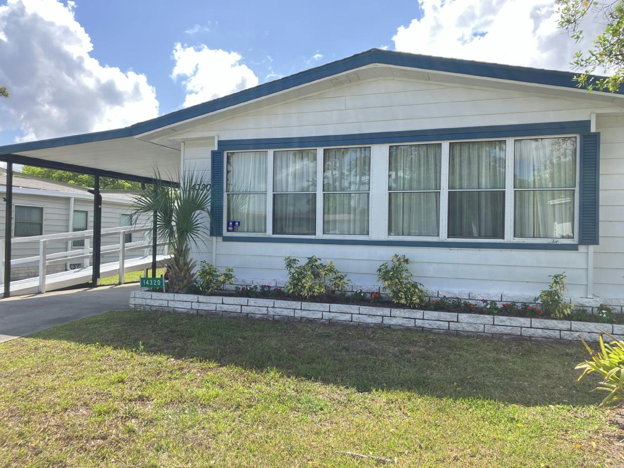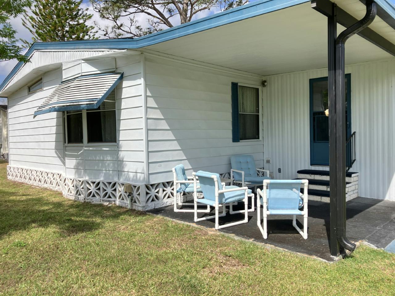 Charming manufactured home in a vibrant 55+ active living community! This spacious home features a convenient ramp for easy access, a relaxing lanai, and a private back patio for outdoor enjoyment. The master bathroom was remodeled, offering a modern feel. Enjoy a lifestyle filled with amenities and a welcoming neighborhood!