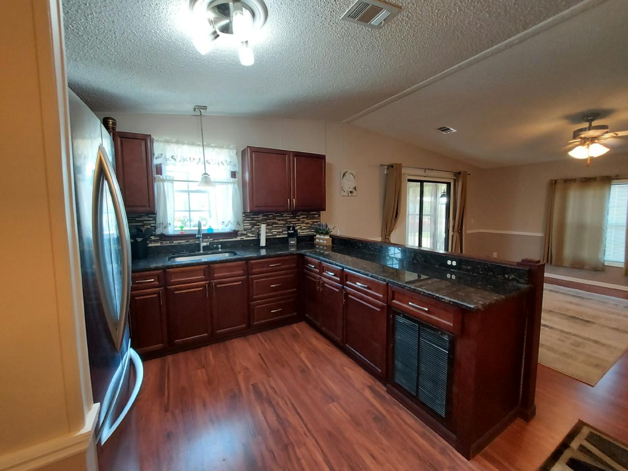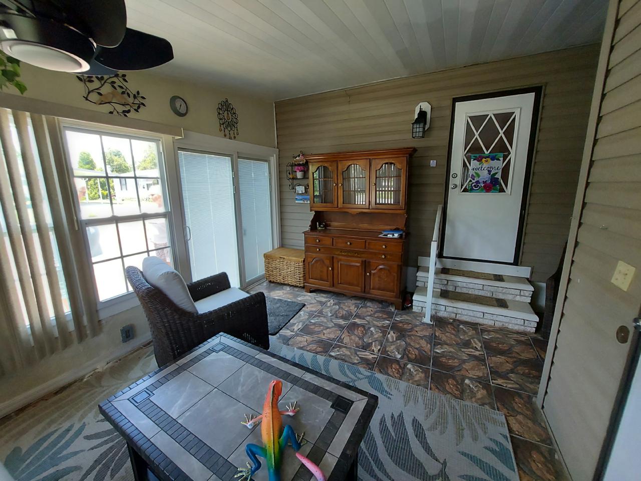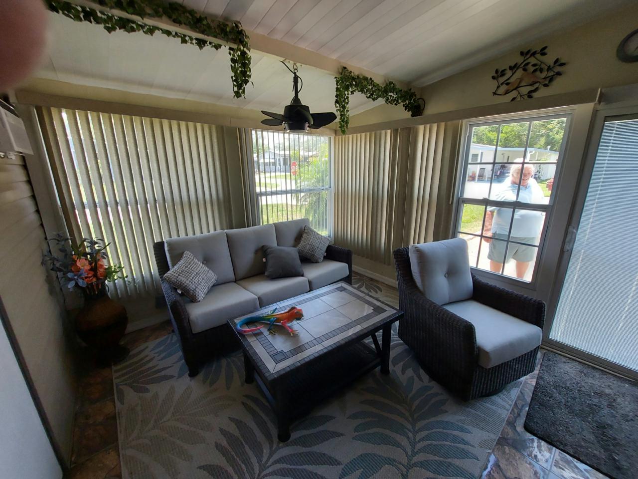 This beautiful home is loaded with upgrades. Both bathrooms have been remodeled, A/C 2 years old, new lighting fixtures throughout home, all new appliances including front loading washer & dryer. Additionally there is a Florida Room and a 4 Season Lanai with new sliding glass door and window treatments. This home comes with a newly built Golf Cart Garage all on an oversized lot! Most of the furniture conveys with the home.