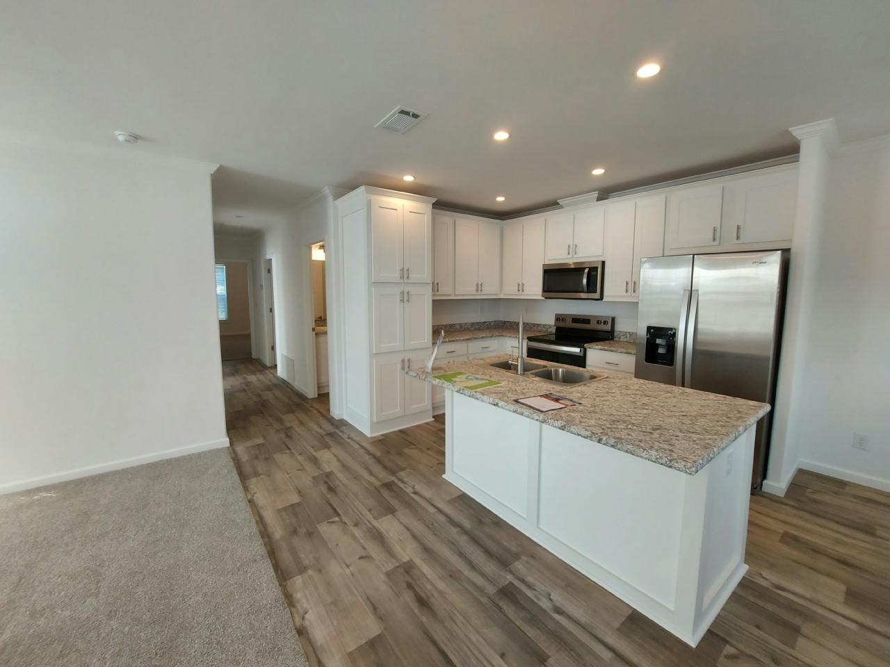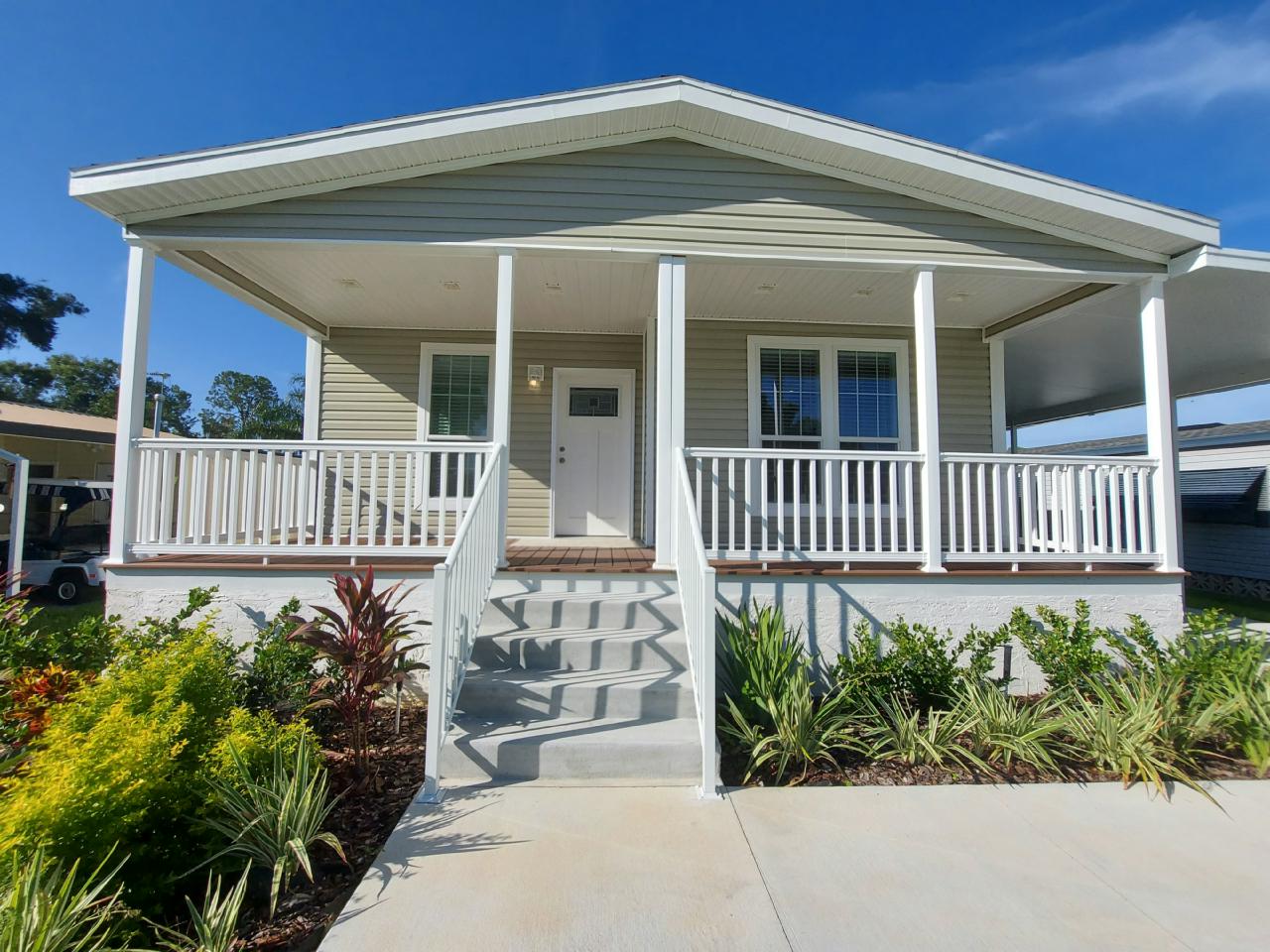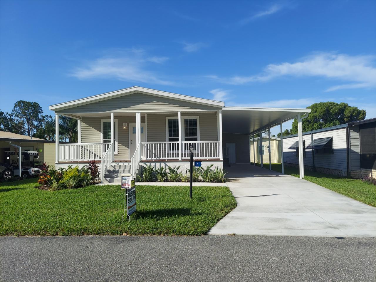 NEW HOME! 3bedroom/2bath built by Skyline with all of the latest in wall insulation, windows and roofing required of all current hurricane-safety standards. The huge kitchen has gorgeous countertops with accentuating trim and tile, stainless steel appliances and a preparation island that make it a kitchen you’ll use…a LOT! The two guest bedrooms are spacious as is the large Master bedroom with a bathroom that boasts double-vanity countertops and separated toilet area from main bathroom. The extended front porch has the best views of sunrises and sunsets, so call to see NOW!