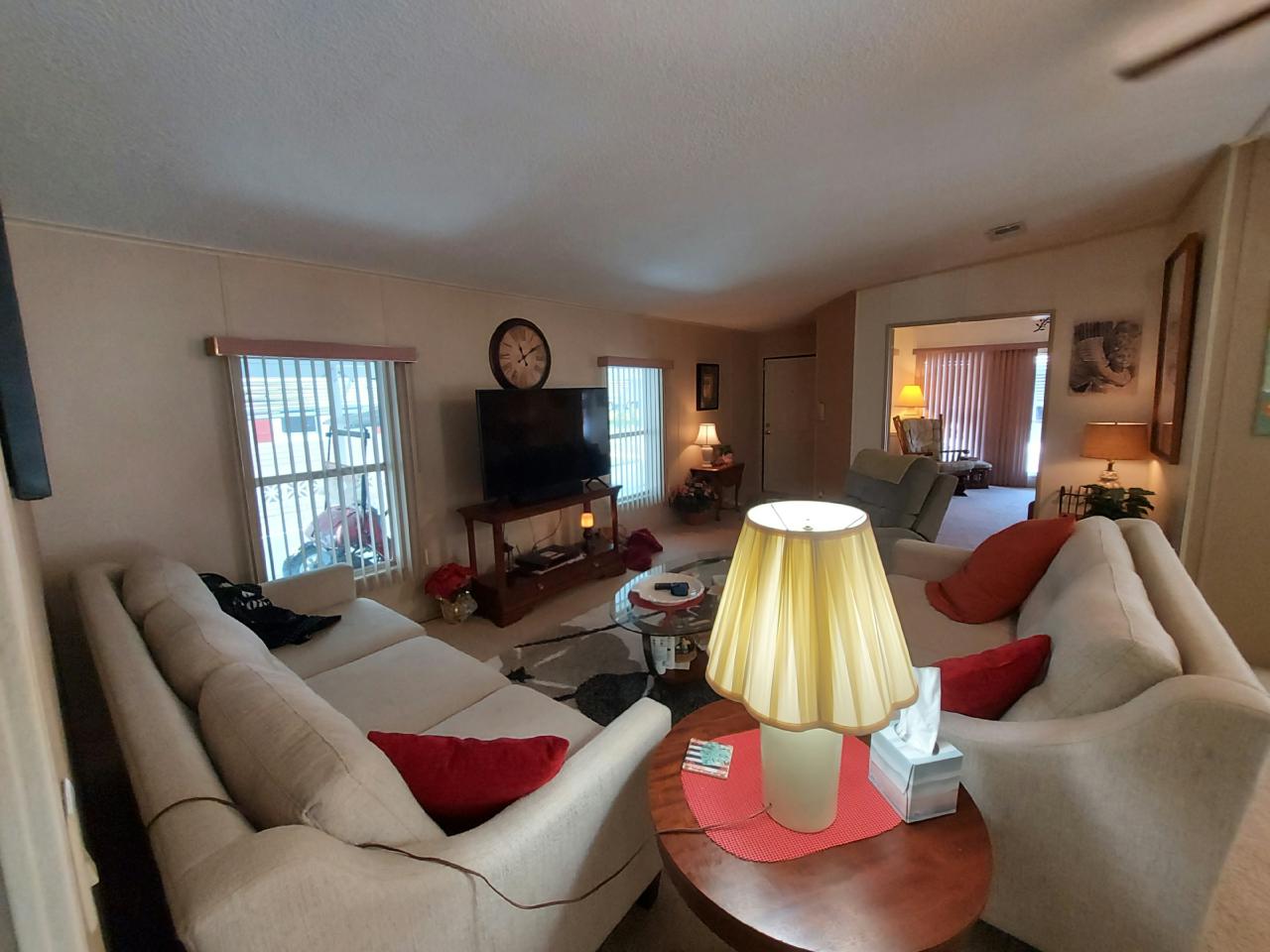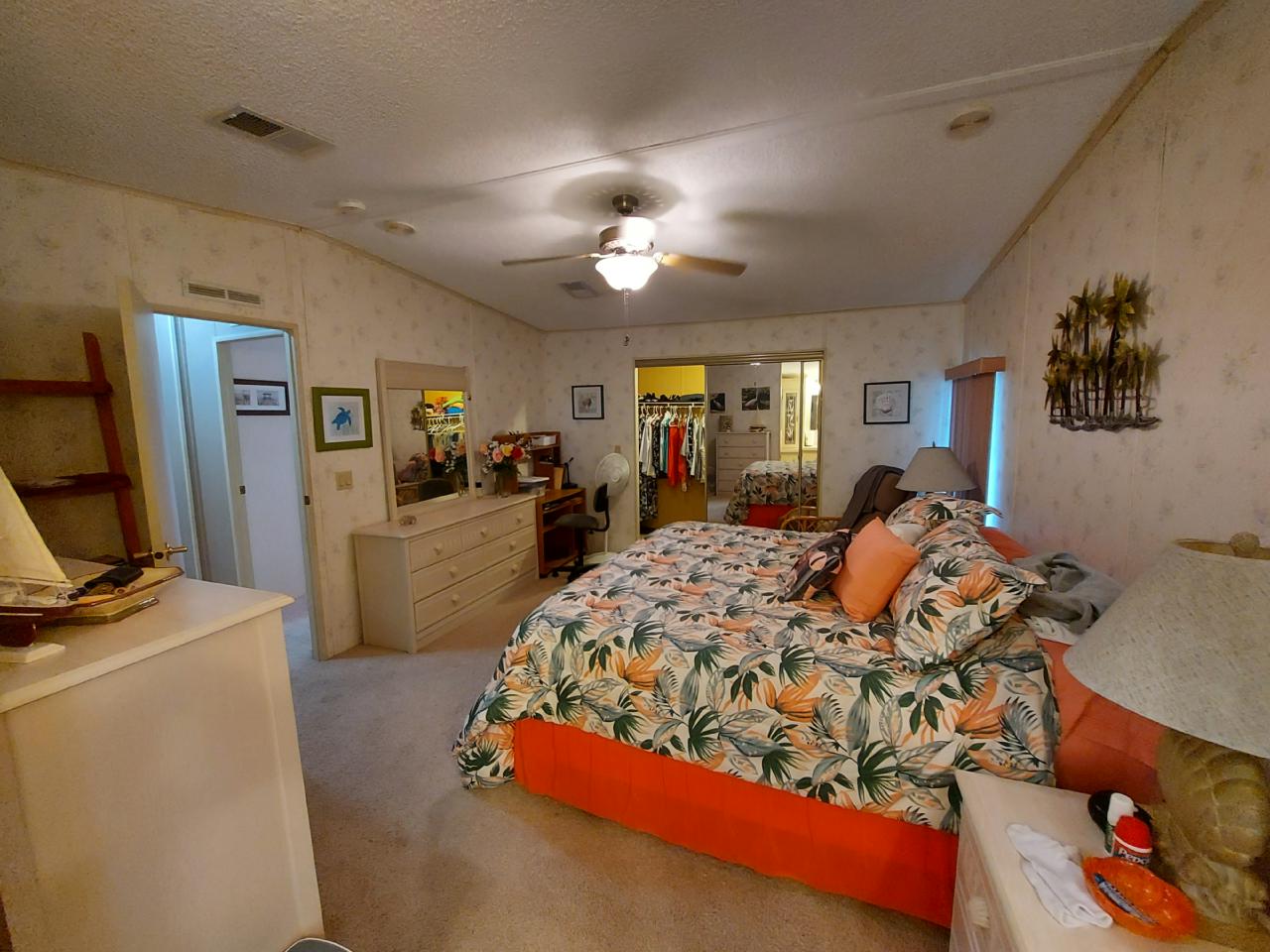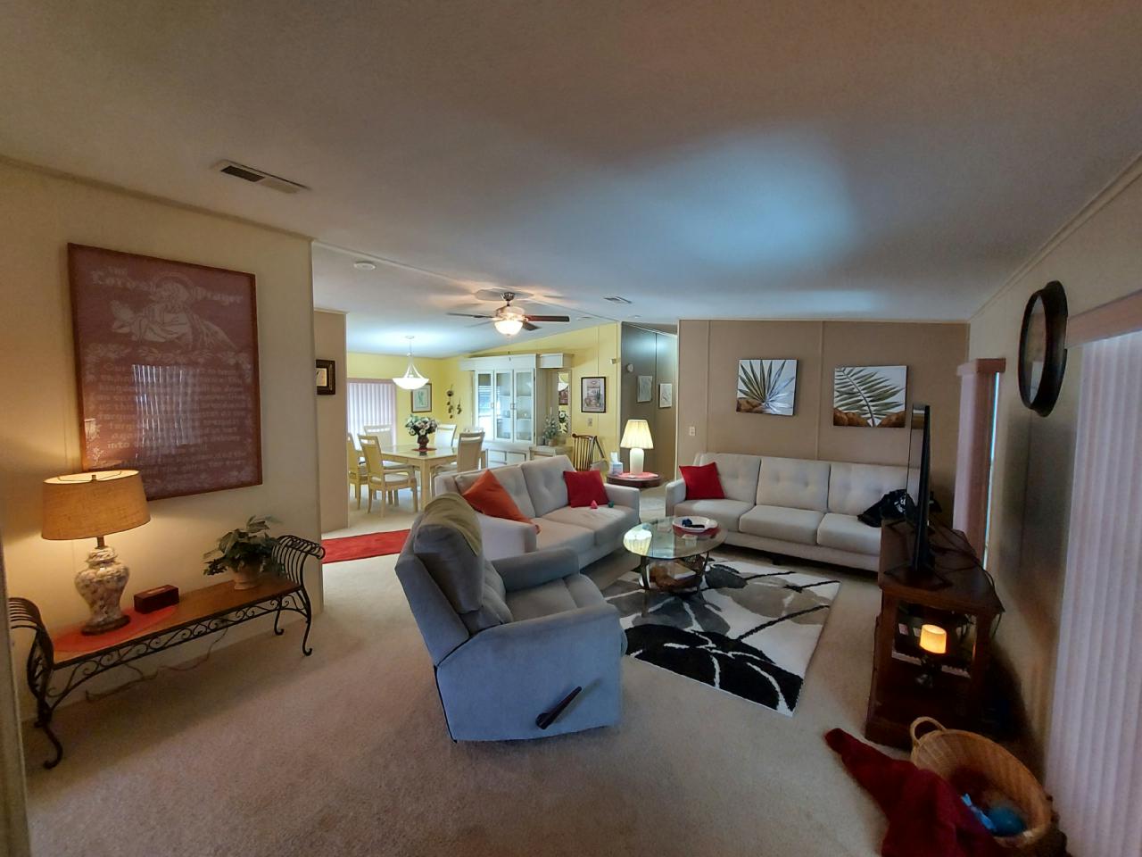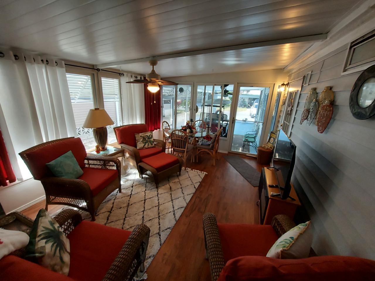 This LARGE beautiful 2 bedroom 2 bath home with BONUS Den / Office is loaded with charm and upgrades. Lighting, flooring, brand new ductwork throughout home, Beautiful COMPLETE New Kitchen with cabinet shelf sliders, Washer / Dryer, New Roof with transferable lifetime warranty AND an automatic retractable garage door screen. The large Lanai is under air and gorgeous. Make an appointment to see this lovely home today!