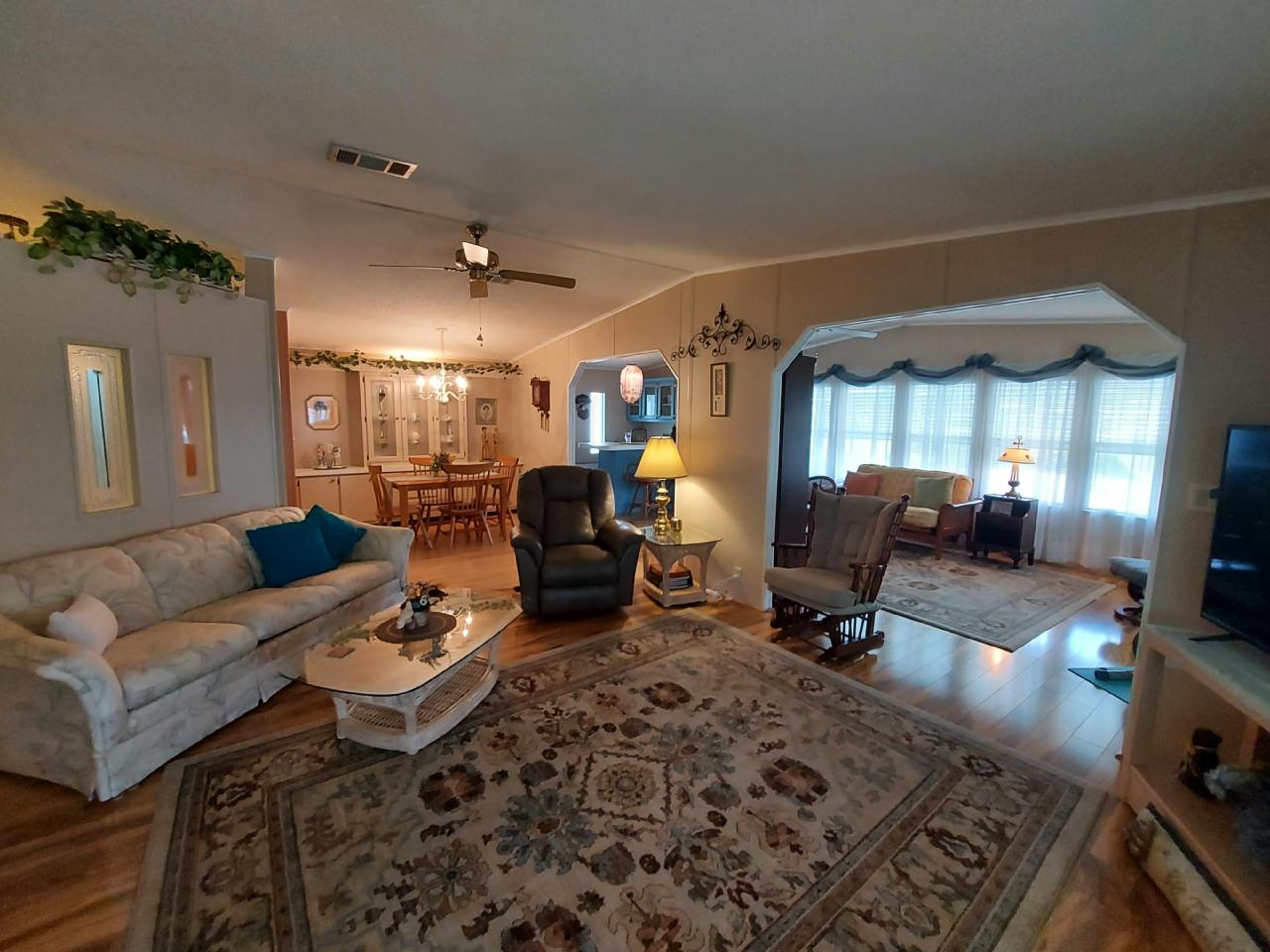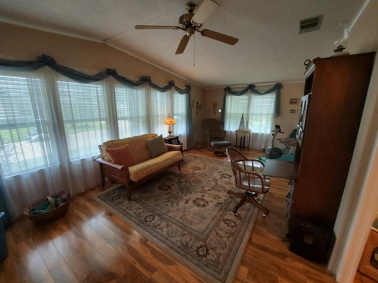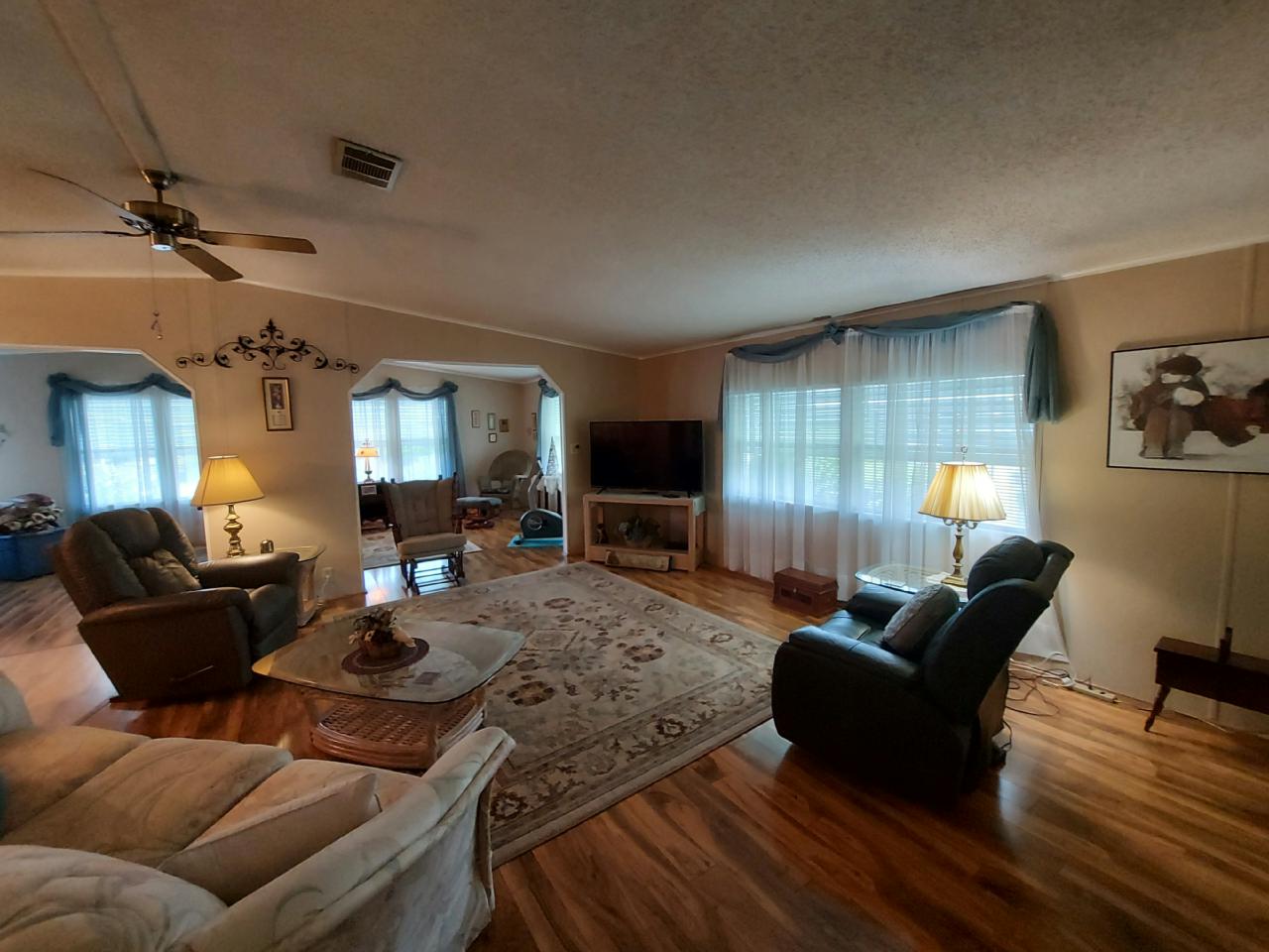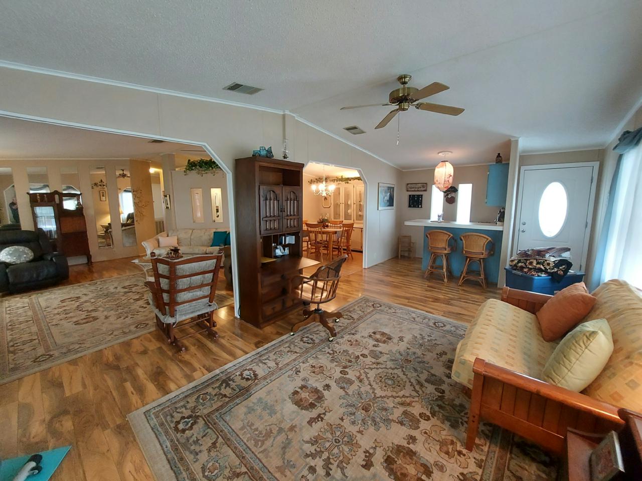 This large 2 bedroom 2 bath has been well taken care of and a really beautiful home. AC water heater and roof have all been upgraded. Additionally the home has a warm cozy Den with a Wet Bar, stamped driveway and a lovely lanai. The shed is also large with plenty of storage and work bench. Most of the furnishings convey with the home sale. Stop by a take a look.