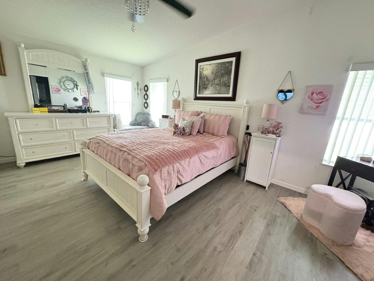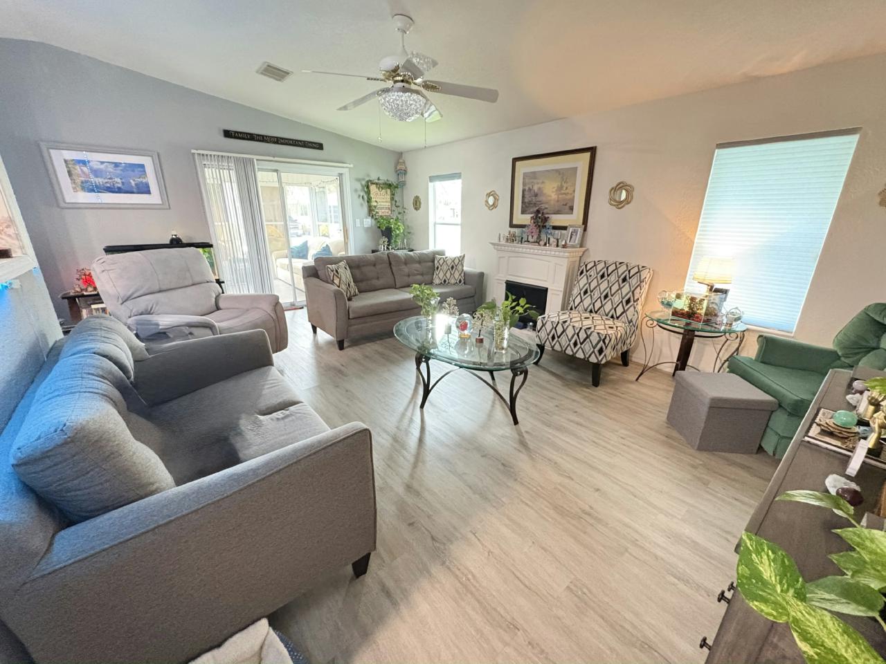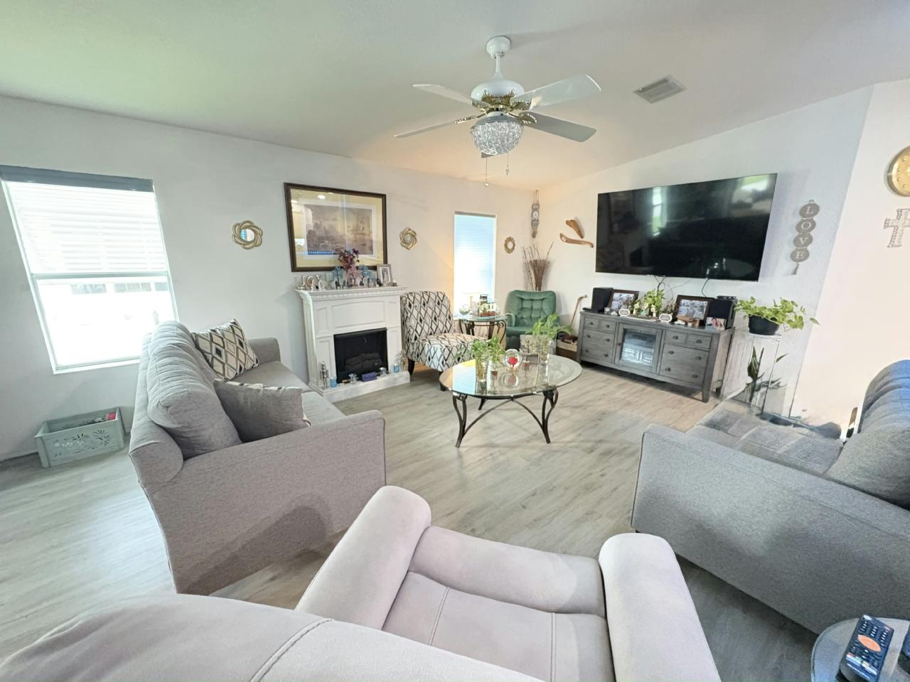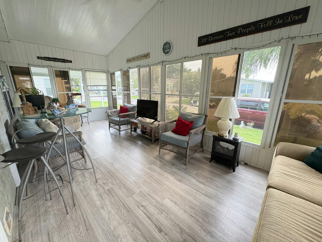 This beautifully updated home features a brand-new roof, new windows, and new laminate flooring throughout. The kitchen is a treasure, boasting elegant backsplash, a new dishwasher and cooktop stove on the spacious center island—perfect for cooking and entertaining. Enjoy the outdoors from the extended front lanai (11 feet larger!), creating an incredible extra living space to relax or host guests. With thoughtful upgrades inside and out, this home is move-in ready, perfect for you!