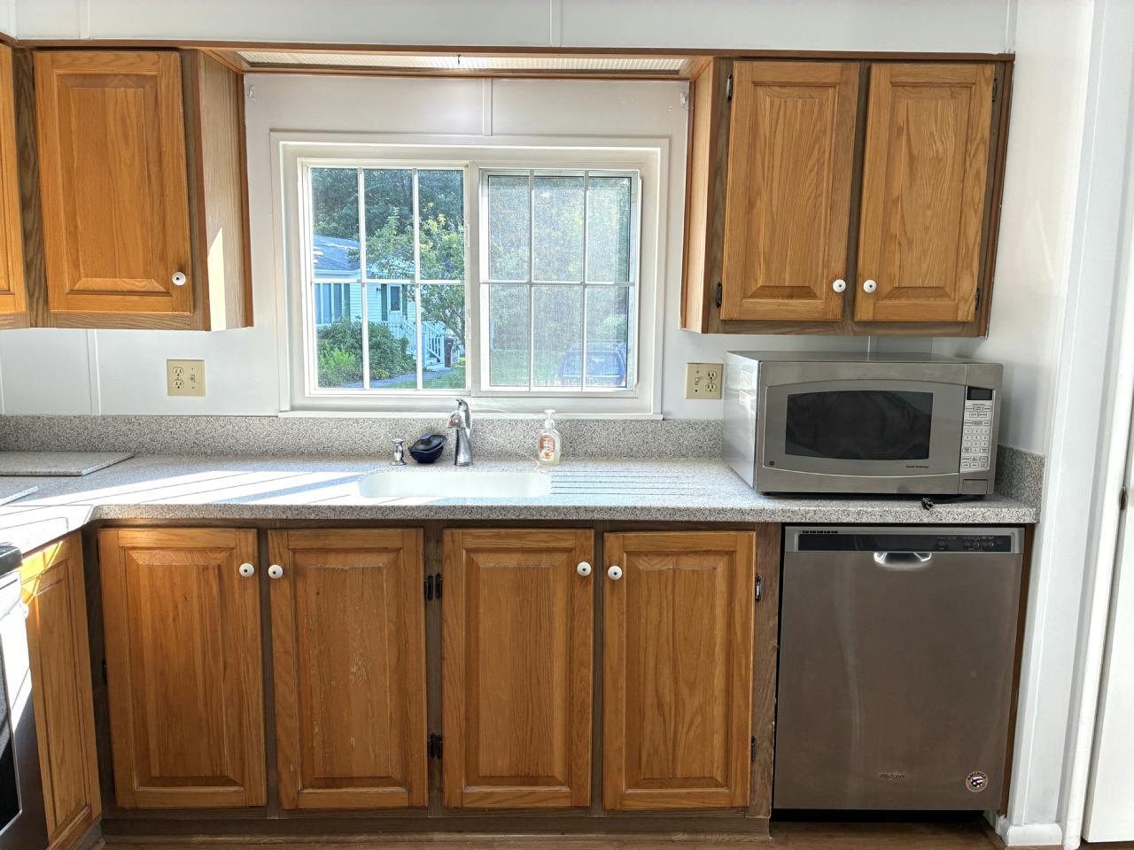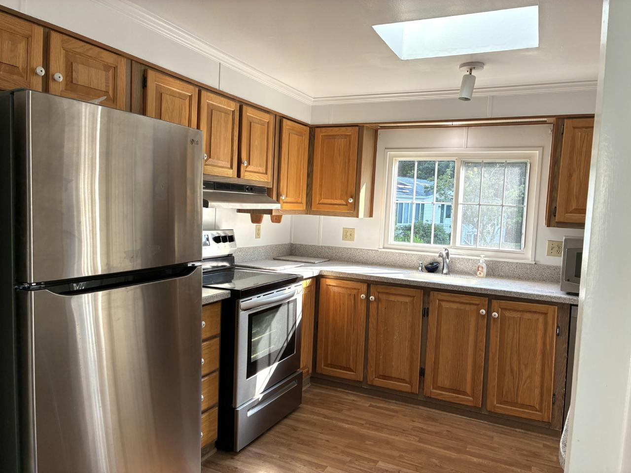 Discover the perfect blend of comfort and convenience in this beautifully maintained 2-bedroom, 2-bath home. Open-concept living and dining area with soaring vaulted ceilings that create an airy, inviting atmosphere. Spacious kitchen flows seamlessly into the dining room. Primary bedroom offers a private en-suite bath, while the second bedroom features an expanded closet for ample storage. Laundry room opens to a large enclosed side porch—perfect for relaxing or additional storage. The private backyard includes a large shed and space to enjoy the outdoors.New generator & HVAC