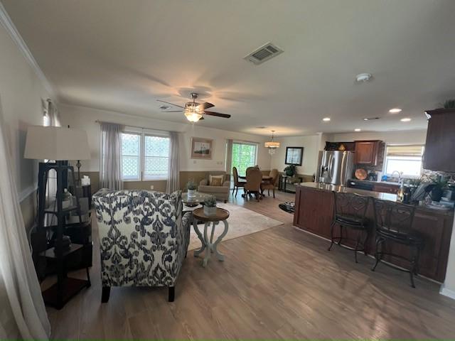 Beautifully maintained home features an open floor plan with updated flooring throughout. The spacious master bedroom includes an adjustable Mattress Firm bed and a convenient washer and dryer set. Enjoy the flexibility of a bonus room, perfect for a home office or hobby space. The kitchen boasts stylish cabinets, matching counter-tops, and a modern back splash. Situated on a corner lot, this home offers an extra-large carport and a large shed equipped with an additional refrigerator. You’ll appreciate affordable lot rent that includes water, sewer, trash, and lawn maintenance.