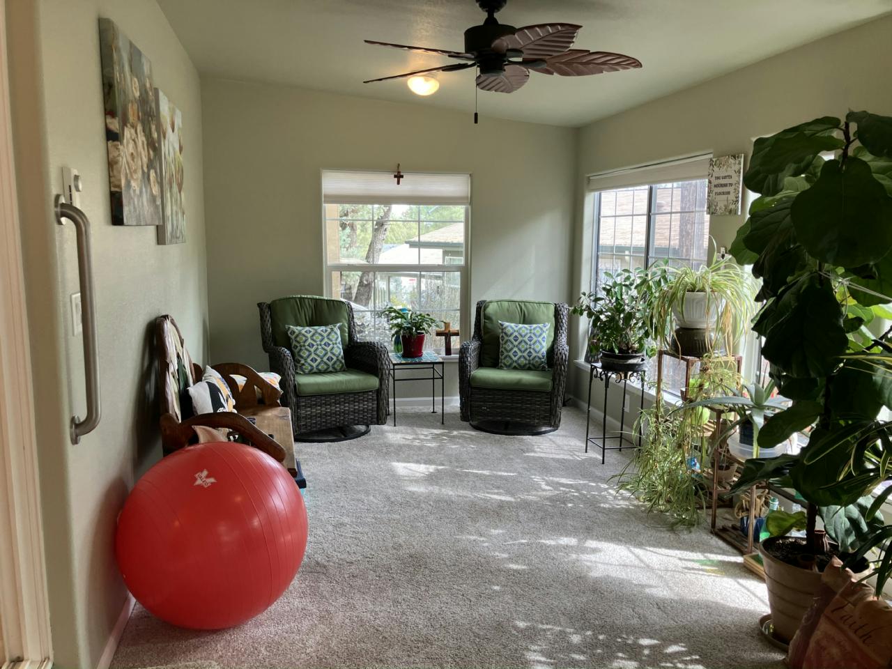 Nestled in a secluded 55+ community surrounded by tranquility, this beautifully maintained residence offers comfort, and modern upgrades. Vaulted ceilings, that create a spacious, airy feel. 2 bed + den. 2 full baths, large walk-in closets for ample storage. Gourmet kitchen featuring 3 yr old appliances, cabinet under-lighting and luxury plank flooring. Arizona room filled with morning sunlight. Covered porch overlooking a meandering stream and boulder-lined creek bed. Professionally landscaped yard with your very own newly installed Jacuzzi. New HVAC system complete with a 10 yr warranty.