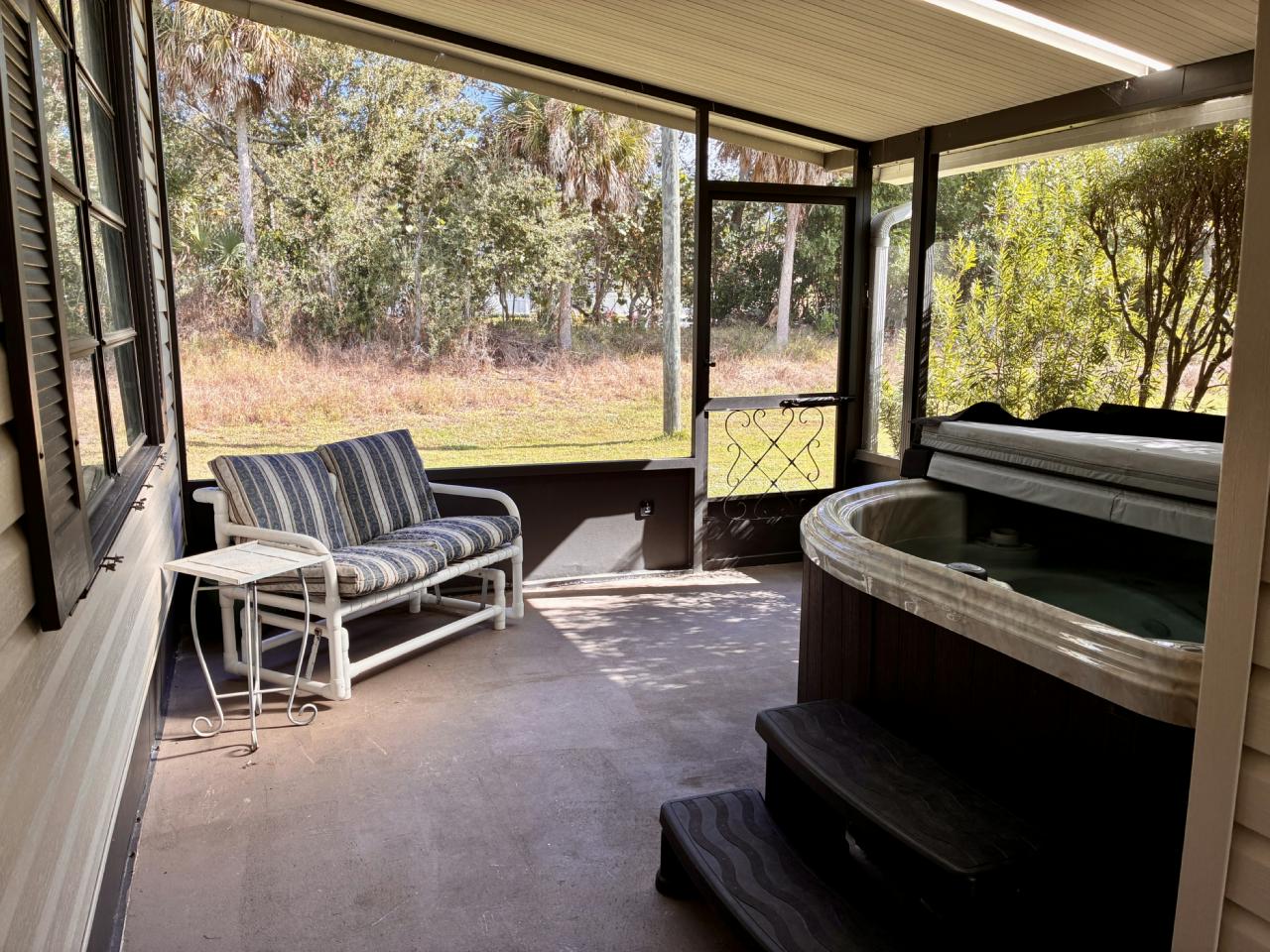 This spacious home features a versatile split layout with 2 living rooms, 2 bedrooms & 2 full baths all on opposite sides of the home. Main kitchen & dining room on one side, kitchenette potential on the other. Perfect for extended family, guests, or a future income-producing space – complete with a separate entrance! New floors throughout, A/C in 2020, large primary bedroom with en suite, and a private lanai overlooking the preserve – perfect for unwinding after a long day at the beach or golf course.