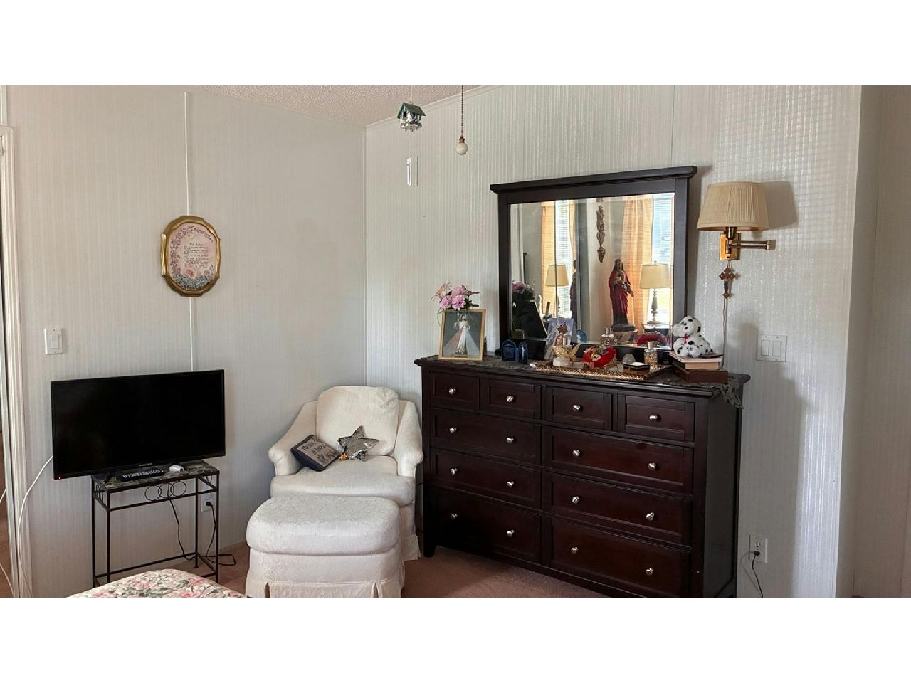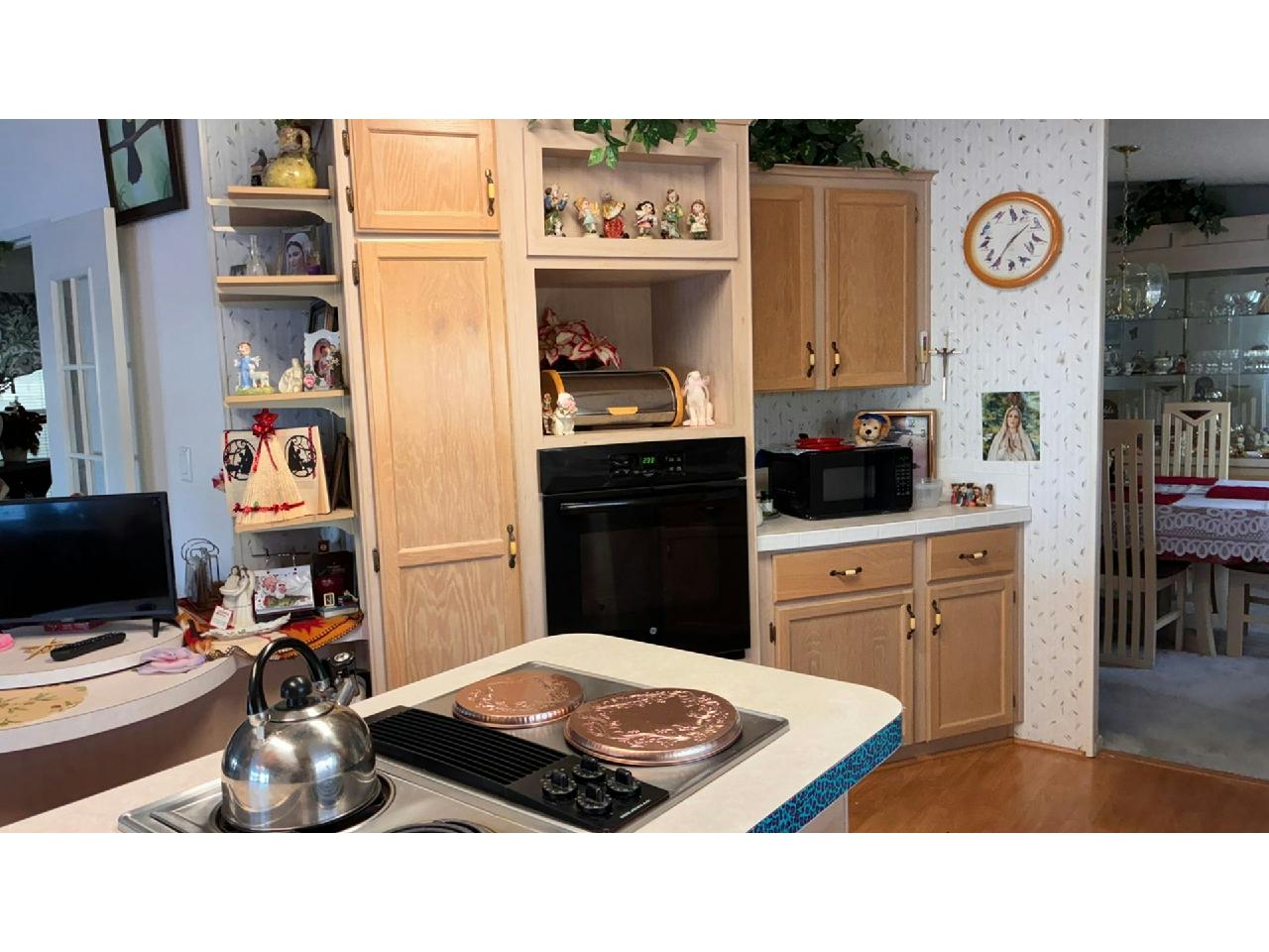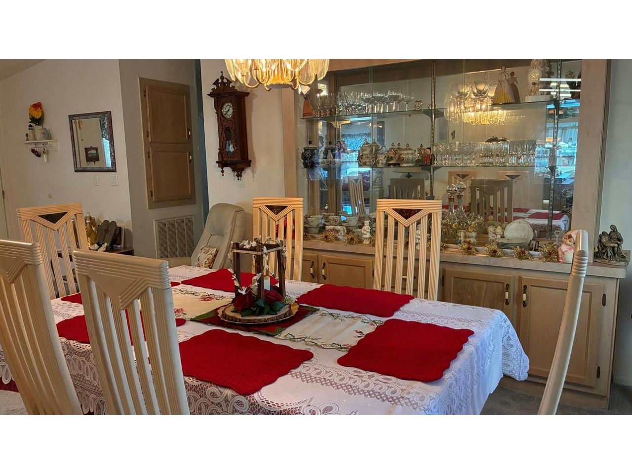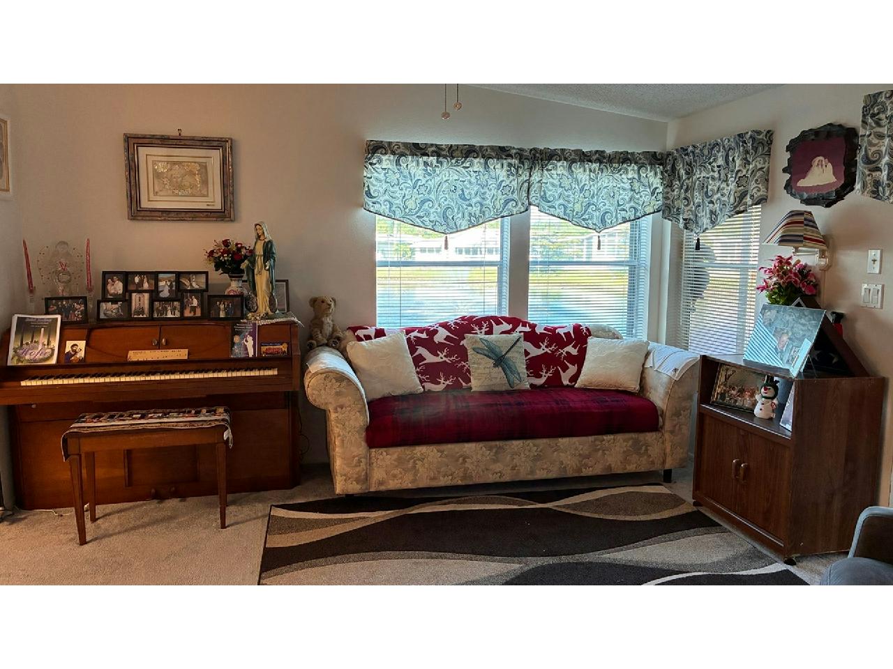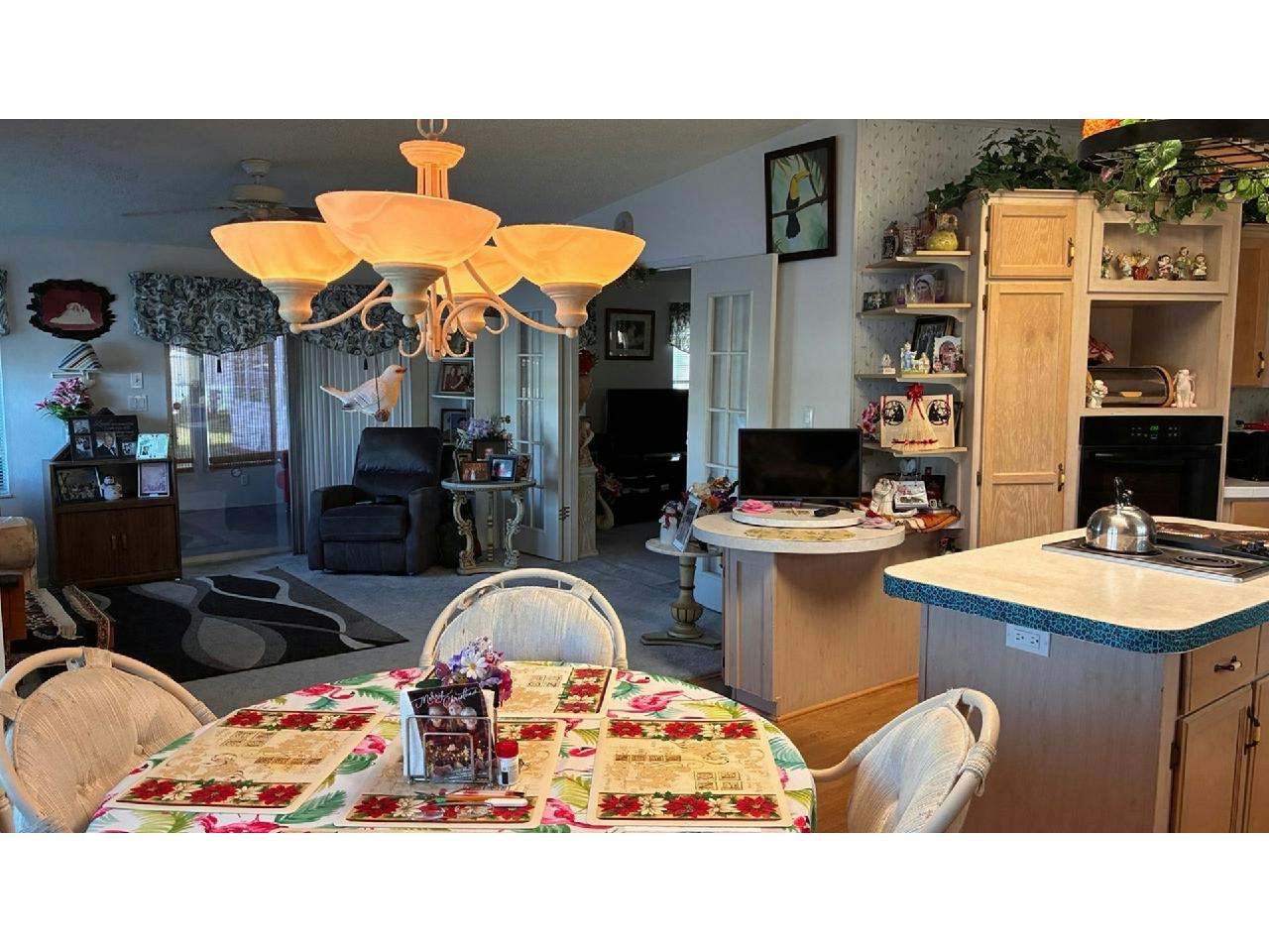 This is the former park model home, and is one of the largest homes in the community! Enjoy wonderful lake / fountain views from the spacious living room and private 4-season Florida room. Home boasts eat-in kitchen with new wall oven, large formal dining room, fireplace negotiable, large owner suite. Accordion storm shutters 2022, hot water heater 2025, carpet 2022, A/C 2018 (compressor 2025).Separate laundry room with newer washer & dryer included. Pride of ownership abounds – don’t miss this rare opportunity to own a gem!