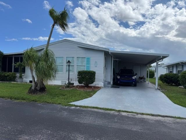 This large home is a 2 bedroom 2 bath with an enclosed lanai and a center island kitchen. It is walking distance to all the five star amenities Sunny South has to offer. With some TLC this home would be a premier home in our community. The kitchen is large for the chef in the family with a walk in pantry. The on suite is large and sun lite. The many front windows in the living room sends in tropical sunlight found only in South Florida. New renovations and upgrades have been installed come and see.