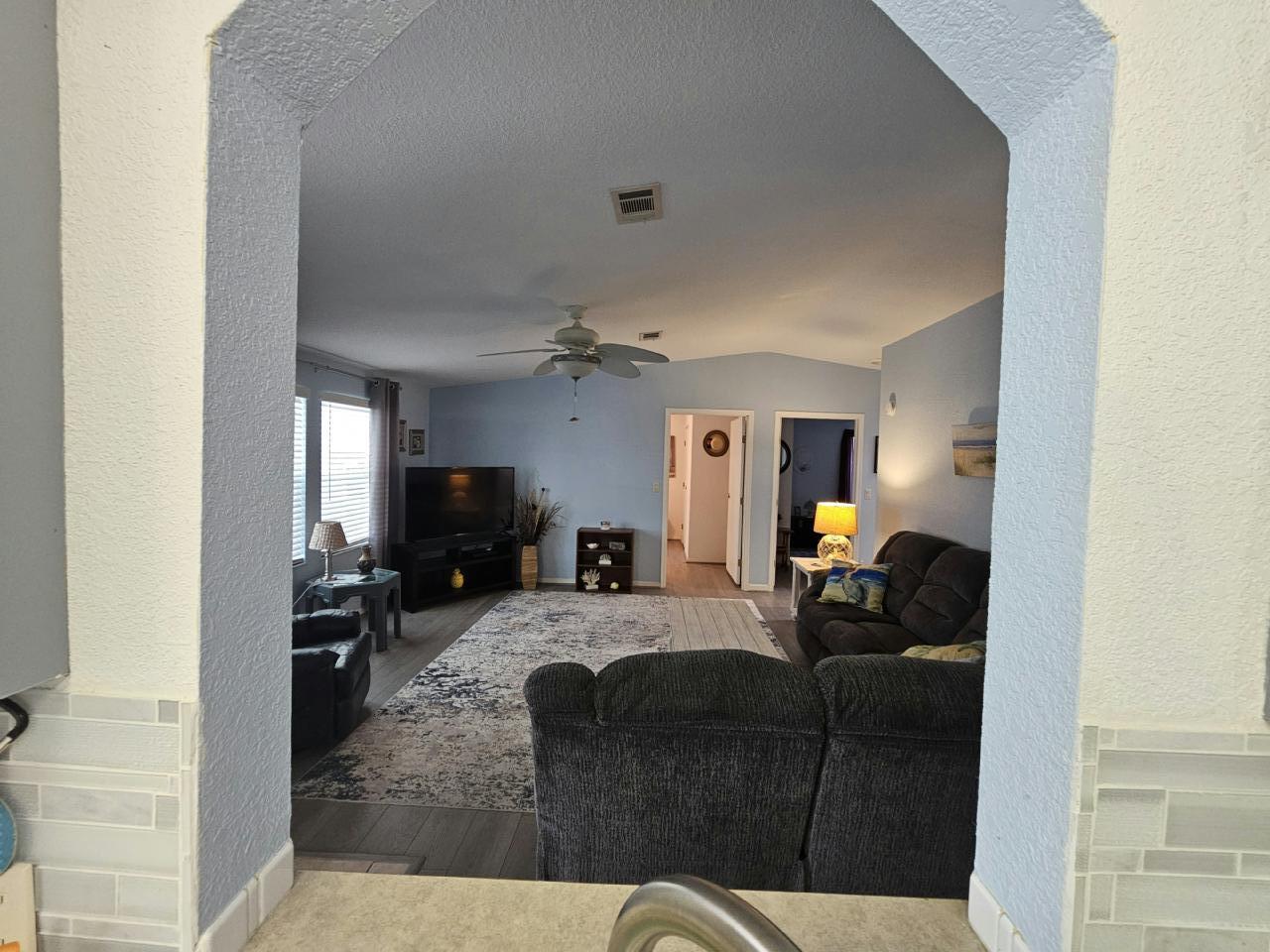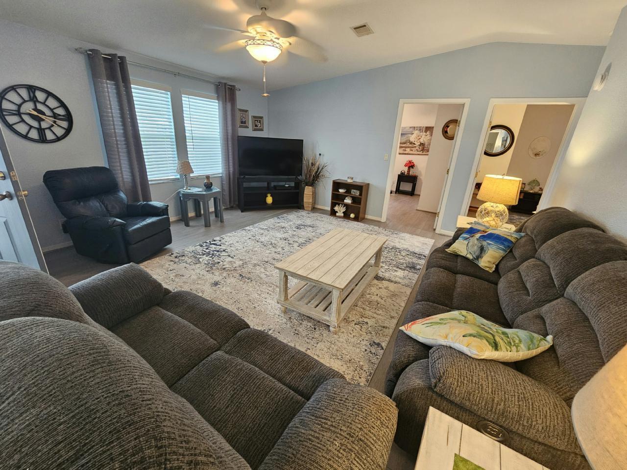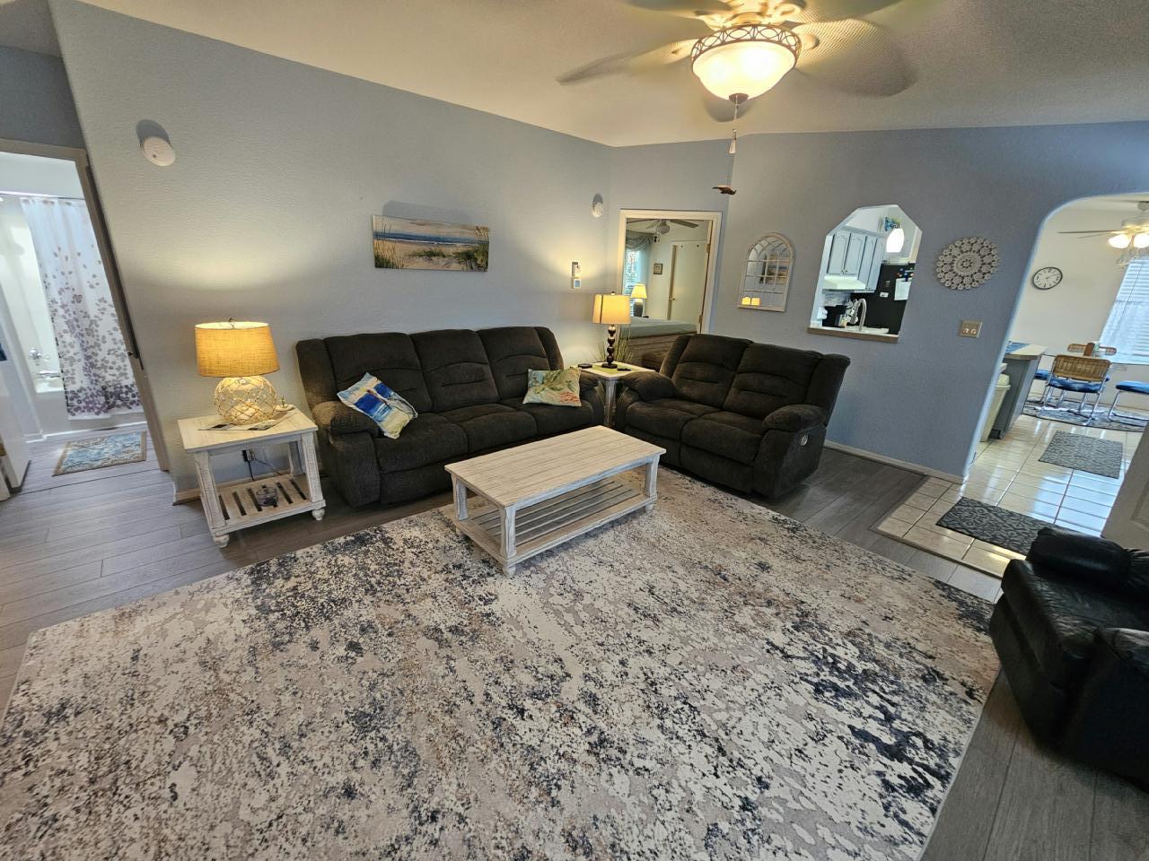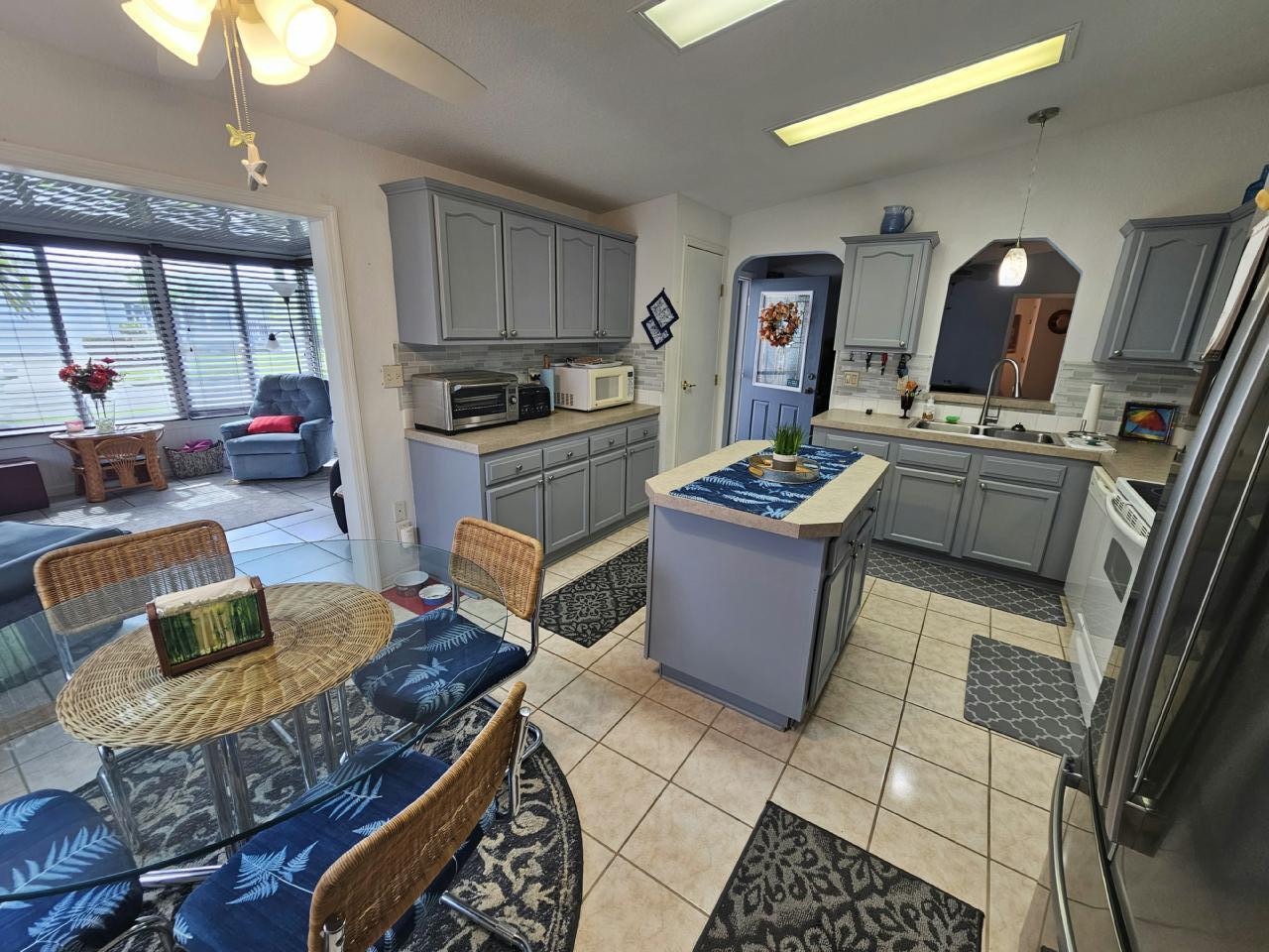 This home is selling fully furnished. The home has 3 bed and 2 bath. Has large sun porch, New Fridge, A/C and Water Heater. Updated Kitchen features ample cupboard space, Pantry, and center island. A Golf Cart comes with the home. Private lot with no one behind you! CHECK OUT THE VIDEO WALKTHROUGH BELOW!