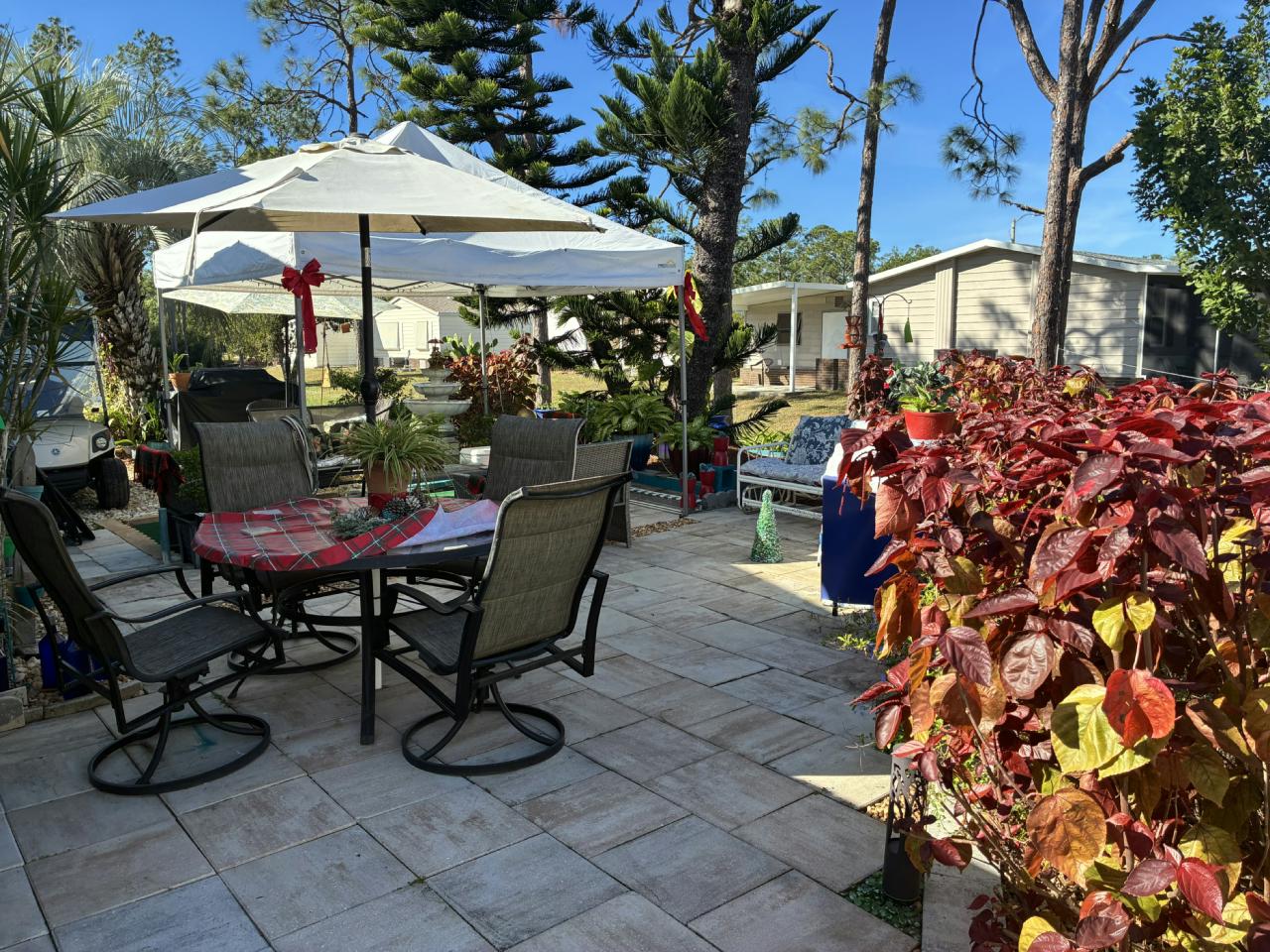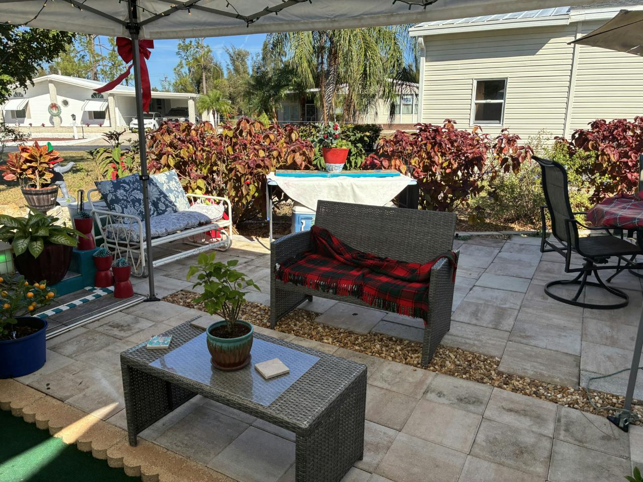 Inviting 1989 Barrington home with 2 beds, 2 baths, and 1,008 sq. ft. Enjoy peace of mind with a 2022 roof and a beautifully remodeled kitchen featuring white wainscot cabinets, glass backsplash, new laminate counters, and under-cabinet lighting. This meticulous home boasts one of the largest backyards and the lowest community fee. Relax in two lanais—one with A/C. Appliances included; bring your own furnishings to make it yours! Luxury vinyl planking through out, indoor laundry, new pvc pipimg